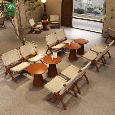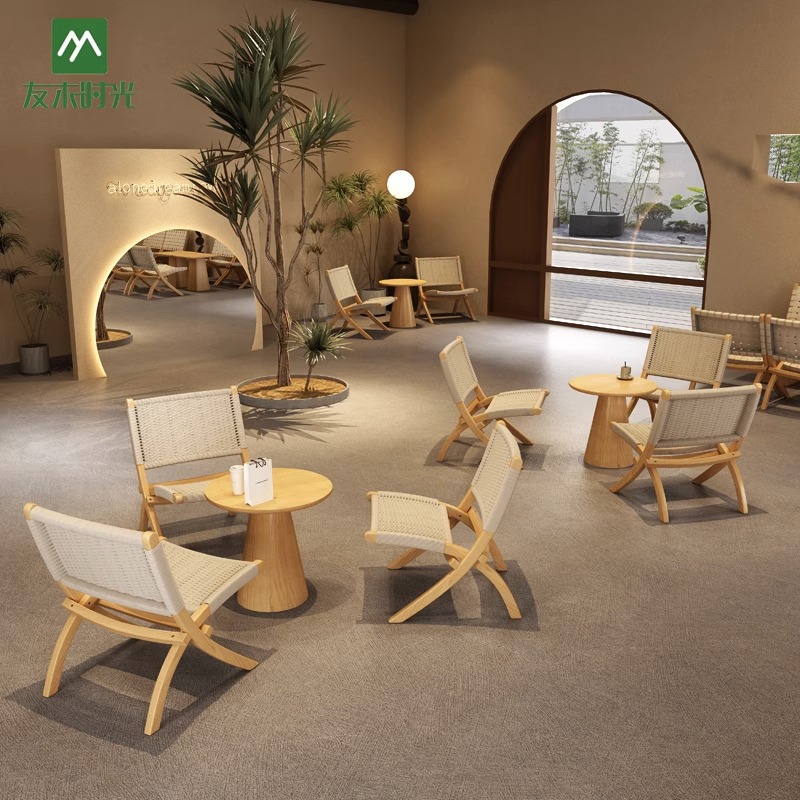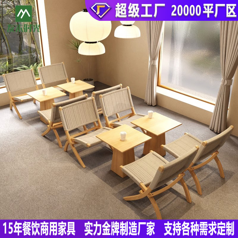 Phong cách trung cổ quán trà sữa quán cà phê retro ghế gỗ nguyên khối đàm phán khu vực nghỉ ngơi cửa hàng tráng miệng cửa hàng bánh kết hợp bàn ghế