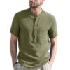 Phong Cách Trung Hoa 2023 Mới Nam Màu Trơn Hanfu Nhật Bản Retro Áo Sơ Mi Ngắn Tay Vải Lanh Cotton Áo Sơ Mi Ba Phần Tư Tay Áo Sơ Mi Áo Dây