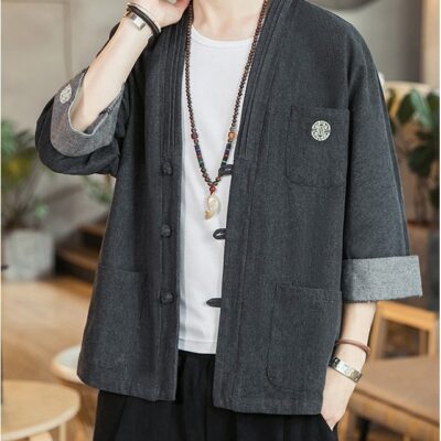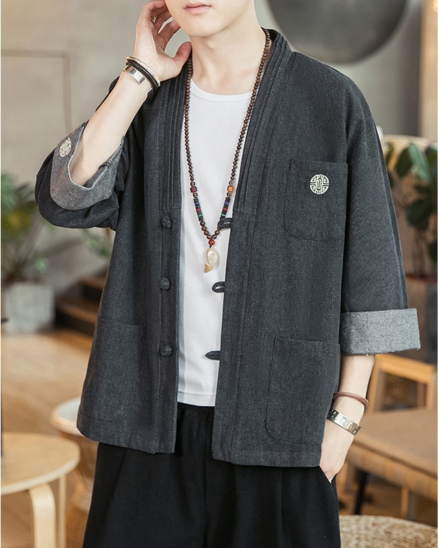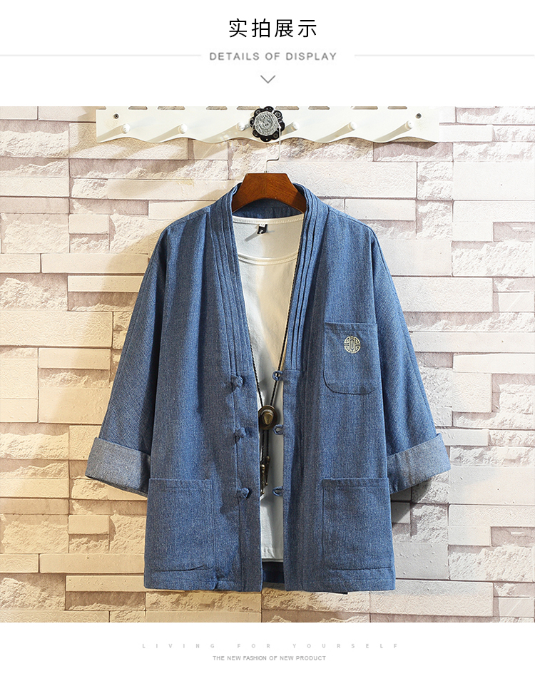 Phong Cách Trung Hoa Áo Khoác Nam Mỏng Thời Trang Hanfu Xu Hướng Retro Áo Khoác Cardigan Khóa Áo Khoác Denim Quần Áo Nam Bán Buôn