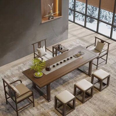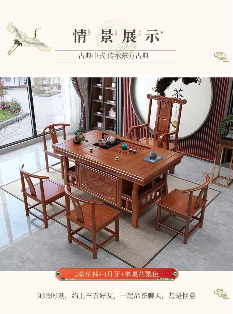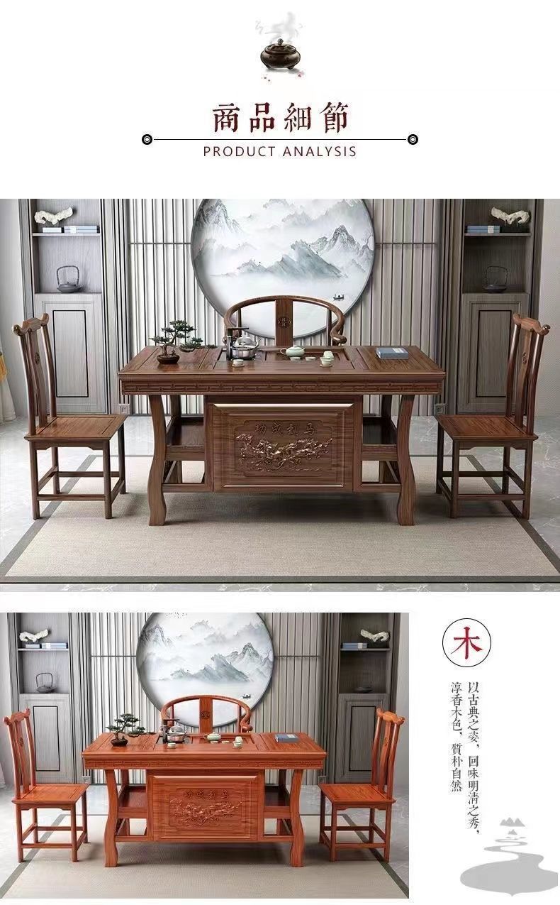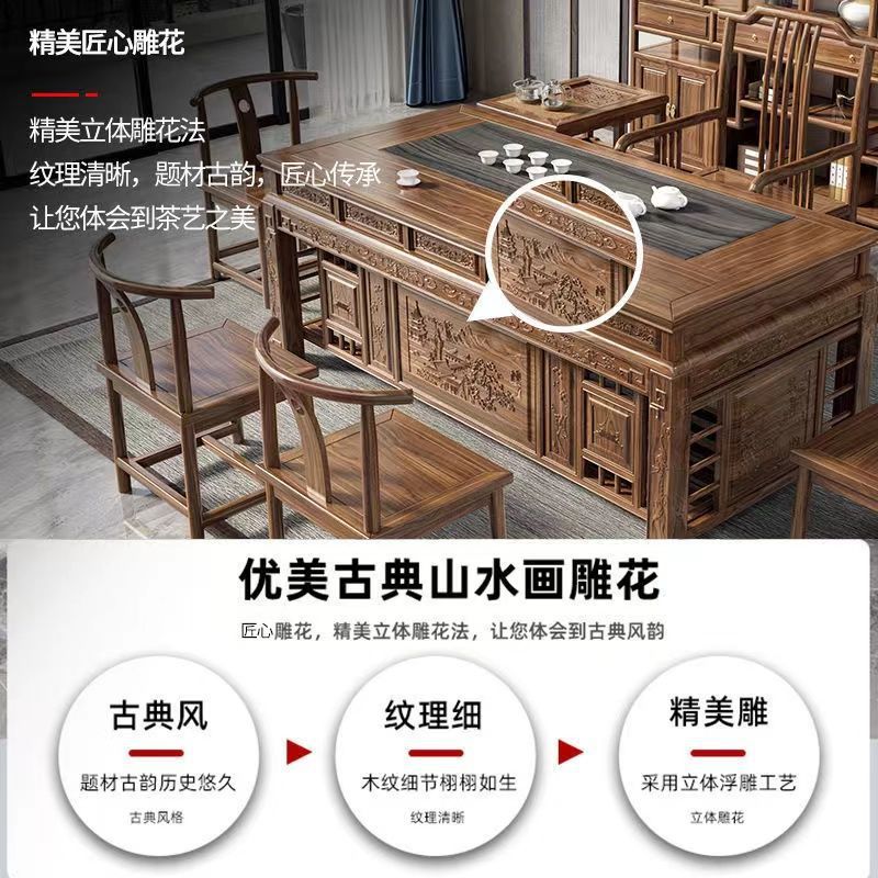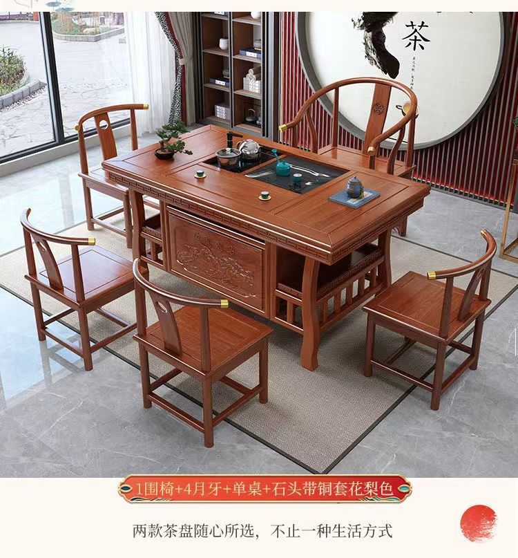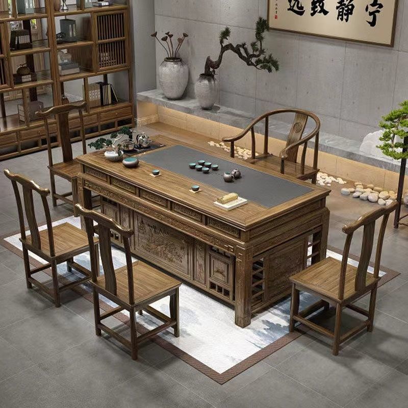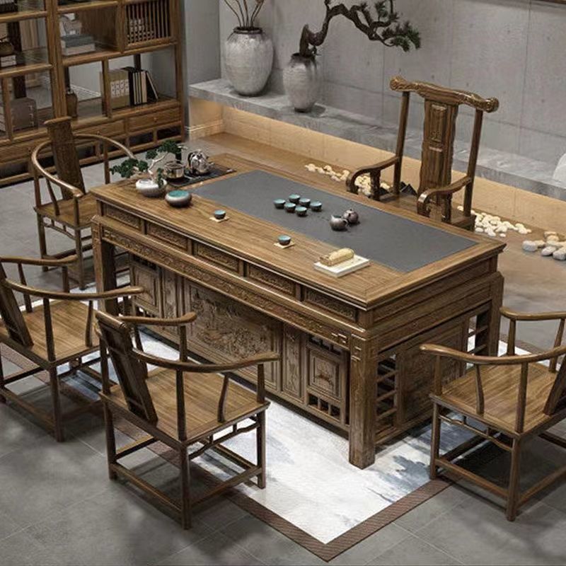 Phong cách Trung Hoa mới Bàn trà gỗ nguyên bộ đầy đủ gia đình log Bàn trà văn phòng Bàn trà và ghế Kung Fu Bàn trà đầy đủ