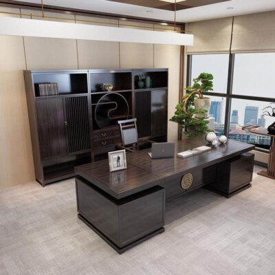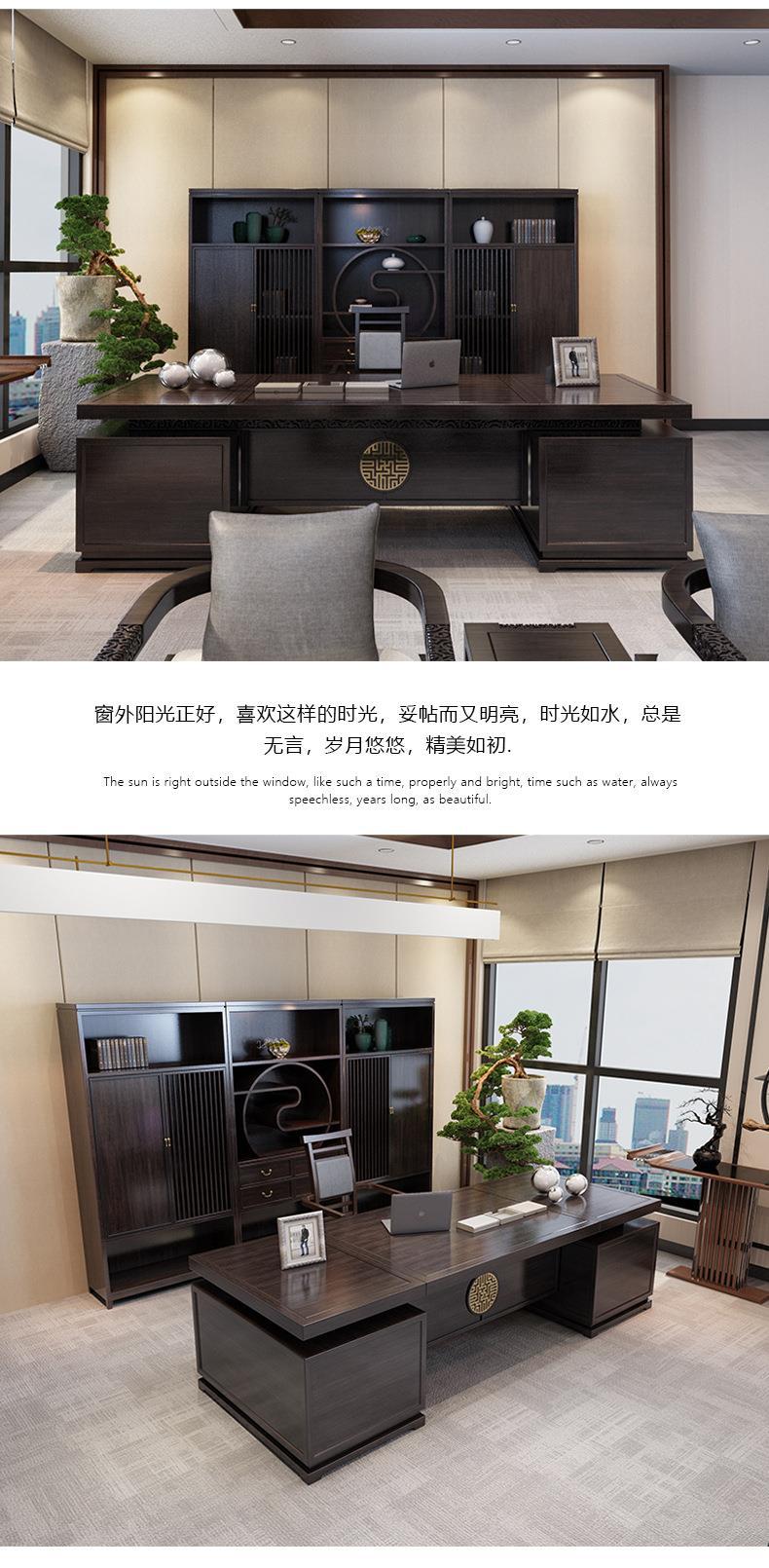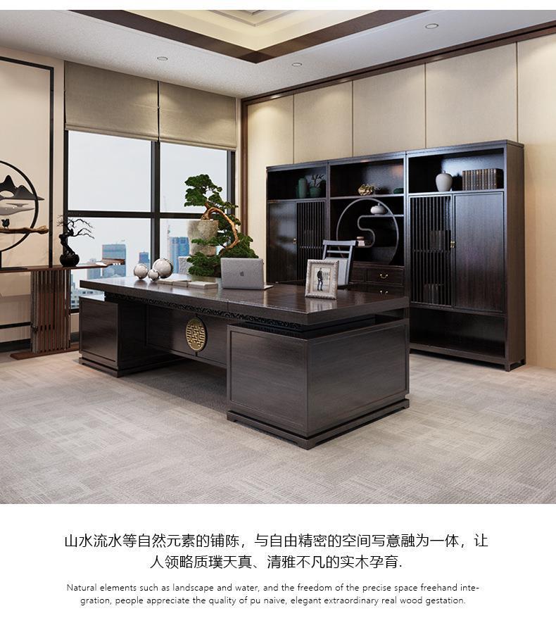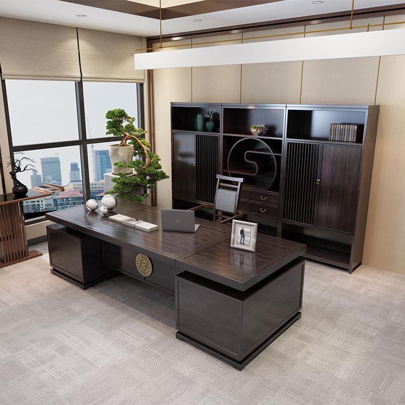 Phong cách Trung Hoa mới bằng gỗ nguyên khối bàn làm việc chủ tịch bàn làm việc văn phòng Zen hiện đại quản lý bàn điều hành nội thất văn phòng