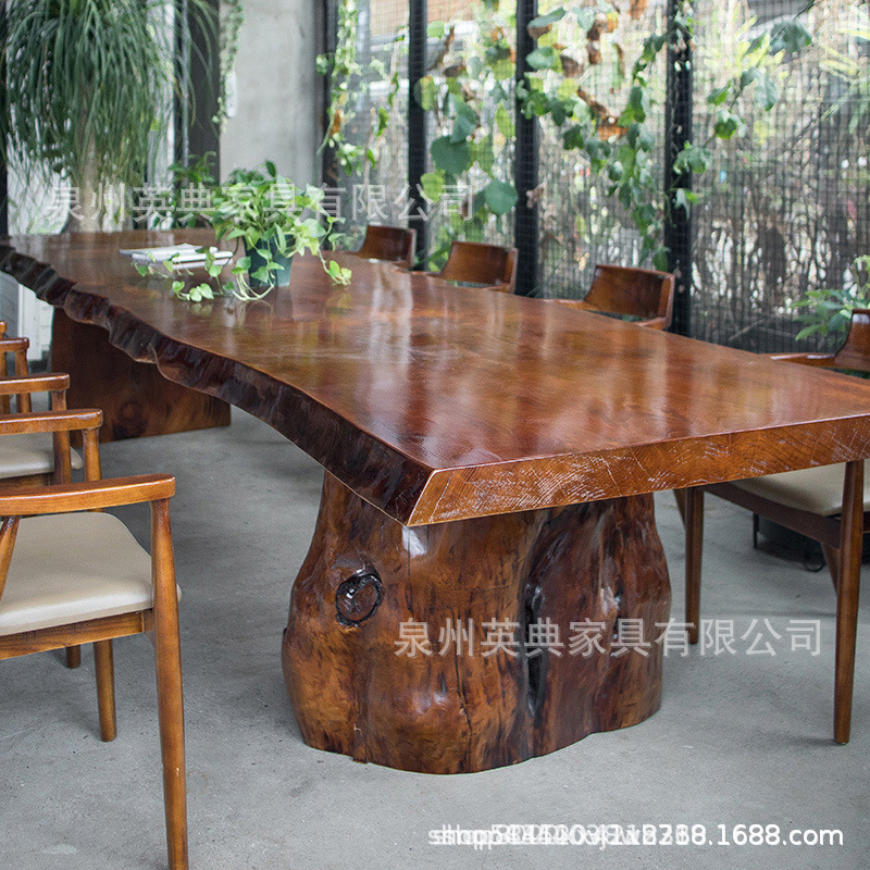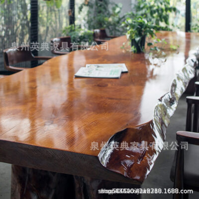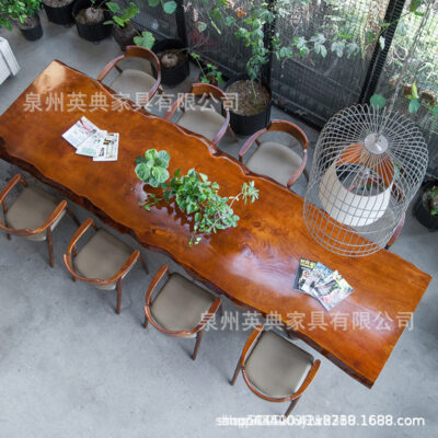 Phong cách Trung Hoa mới bằng gỗ nguyên khối lớn Bàn trà cạnh gỗ tự nhiên Bàn trà văn phòng tại nhà Thiền trà pha trà bàn ghế kết hợp