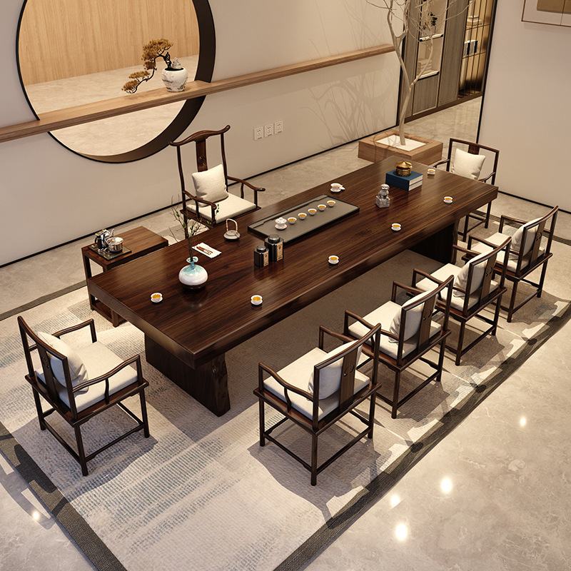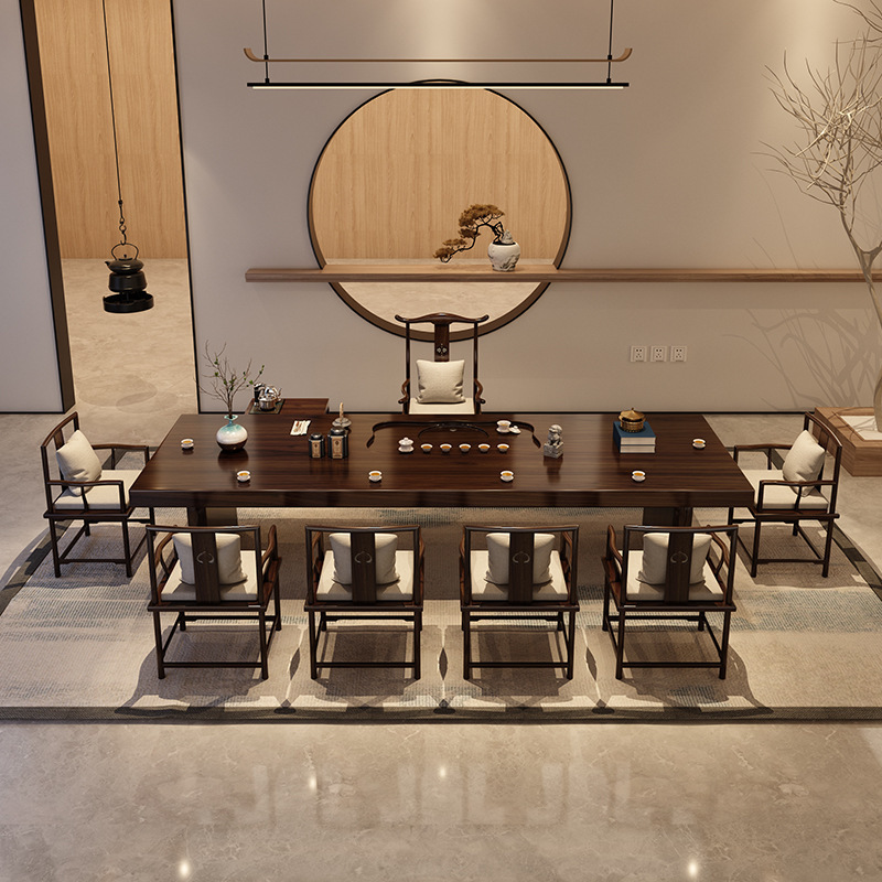 Phong cách Trung Hoa mới chắc chắn Bàn trà gỗ đăng nhập lớn bảng nhà Bàn trà và ghế văn phòng đơn giản uống trà kung fu Bàn trà đầy đủ