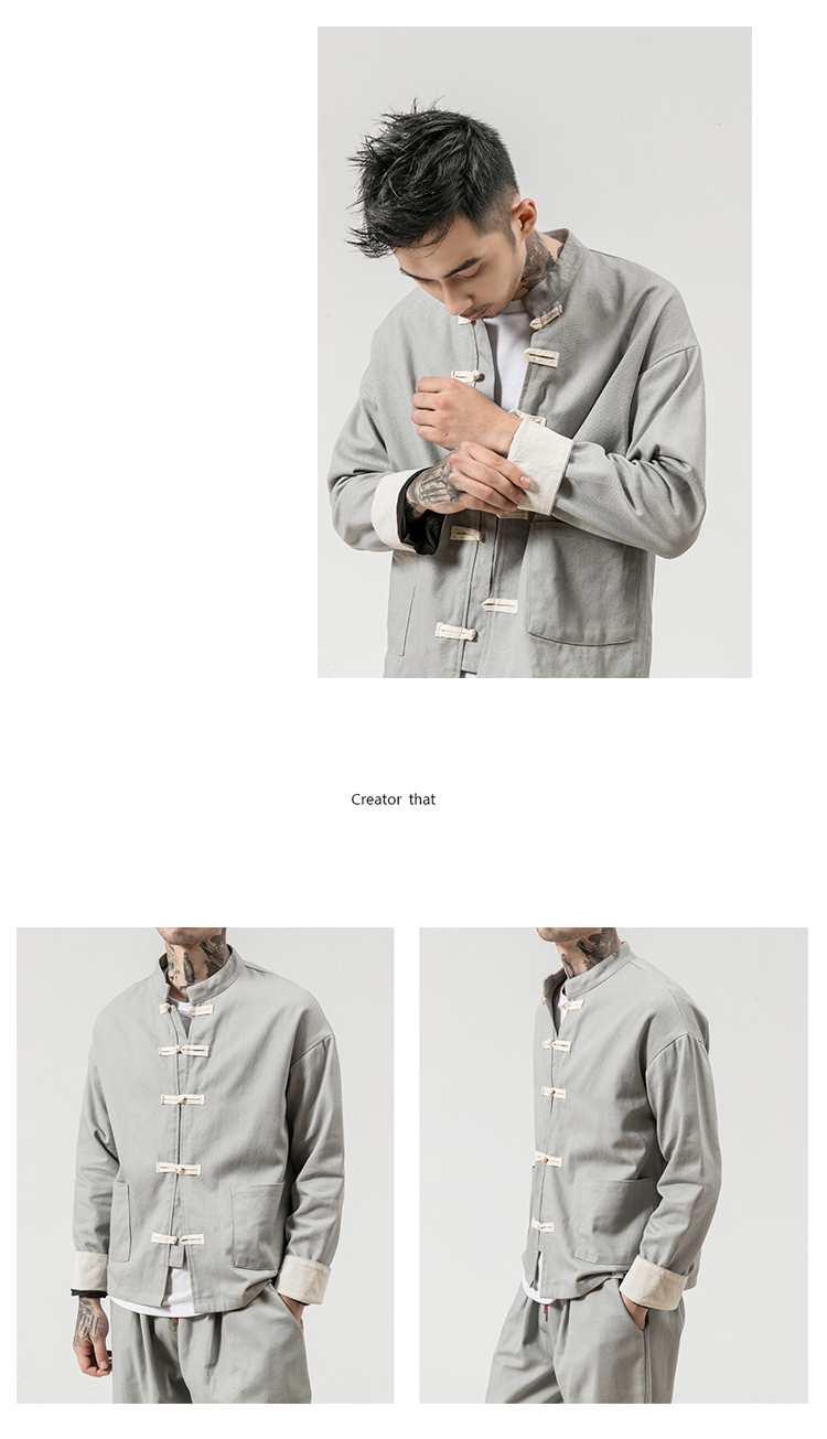 Phong Cách Trung Hoa Retro Nam Thu Đông Nam Khóa Cổ Cardigan Size Lớn Thời Trang Cotton Và Vải Lanh Áo Khoác Áo Khoác