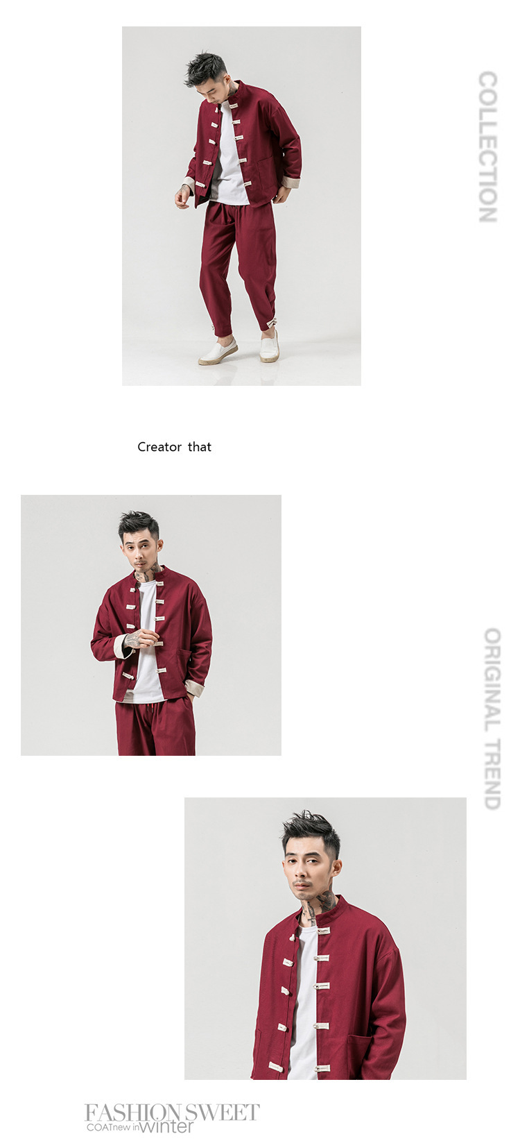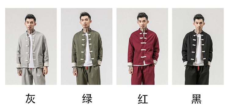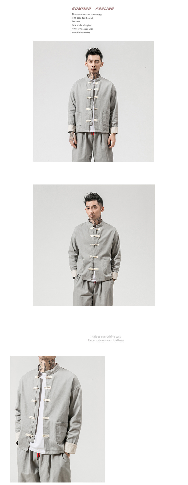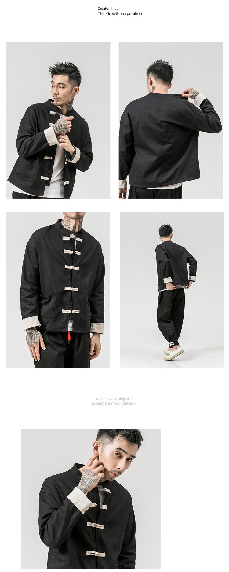 Phong Cách Trung Hoa Vải Lanh Cotton Khóa Size Lớn Nam Áo Khoác Áo Khoác Nam Vải Lanh Retro Cổ Đứng Đường phù Hợp Với Hàng Đầu Lô