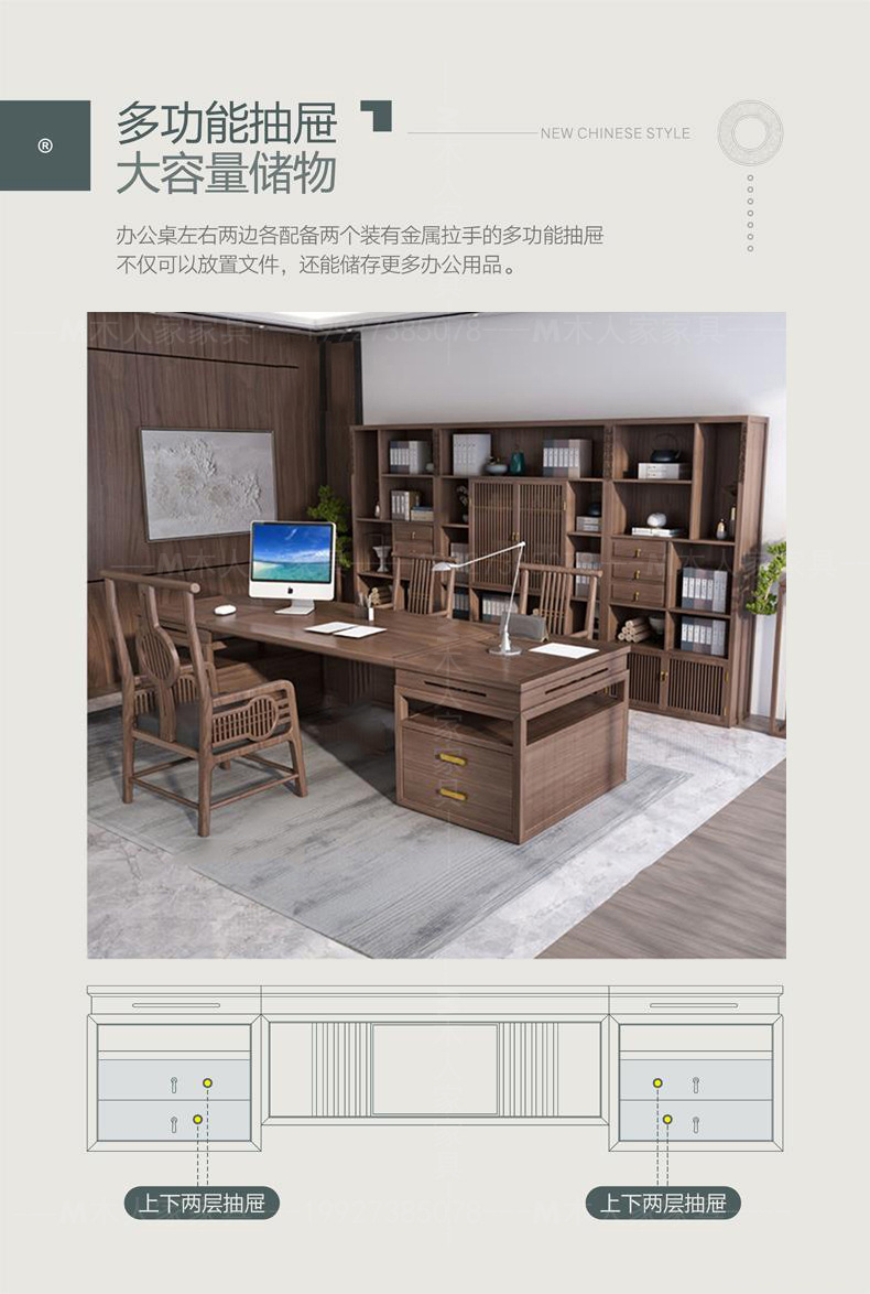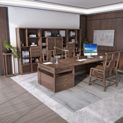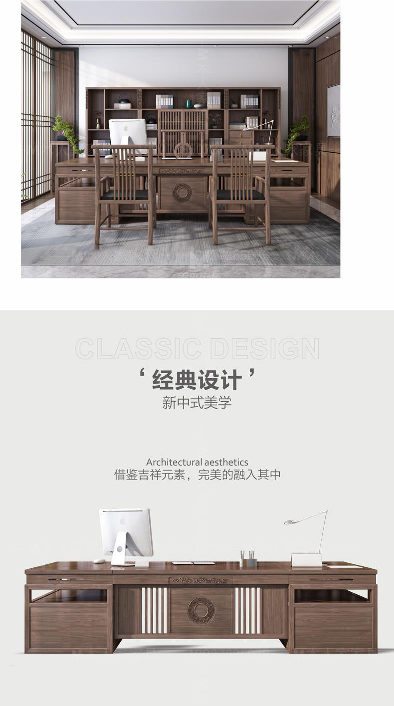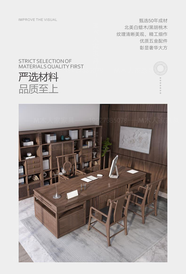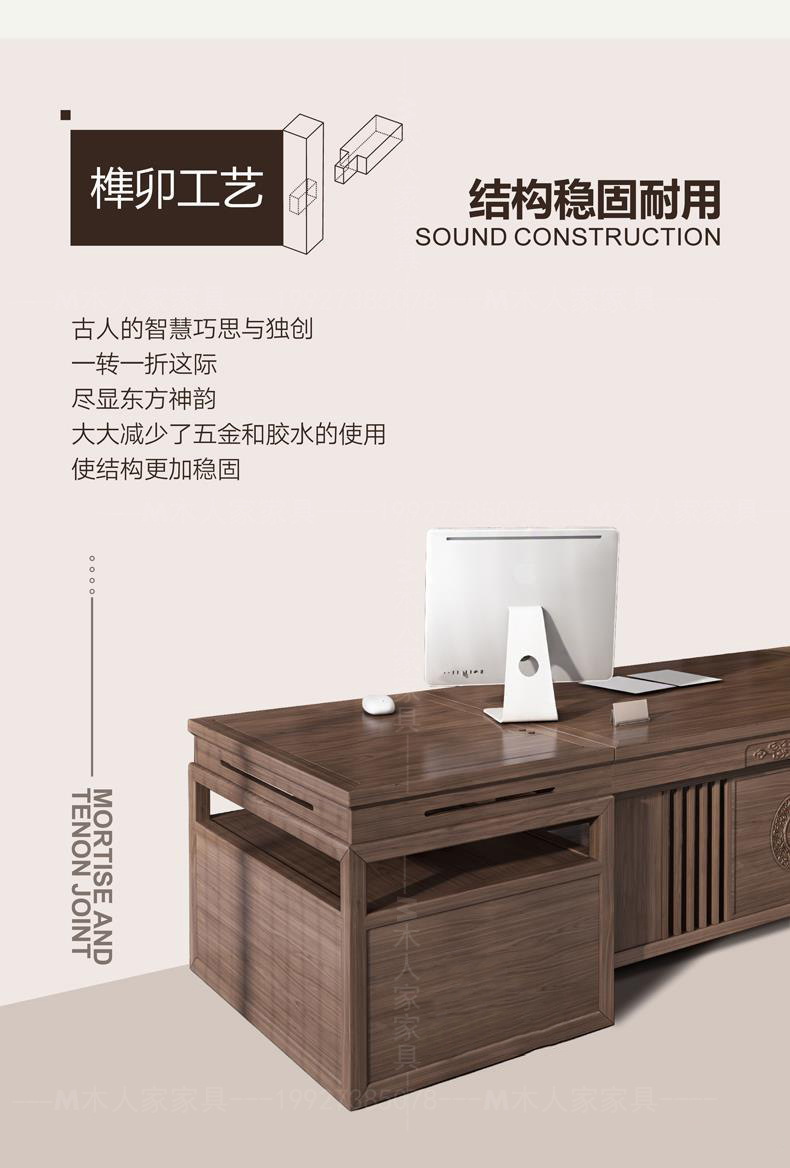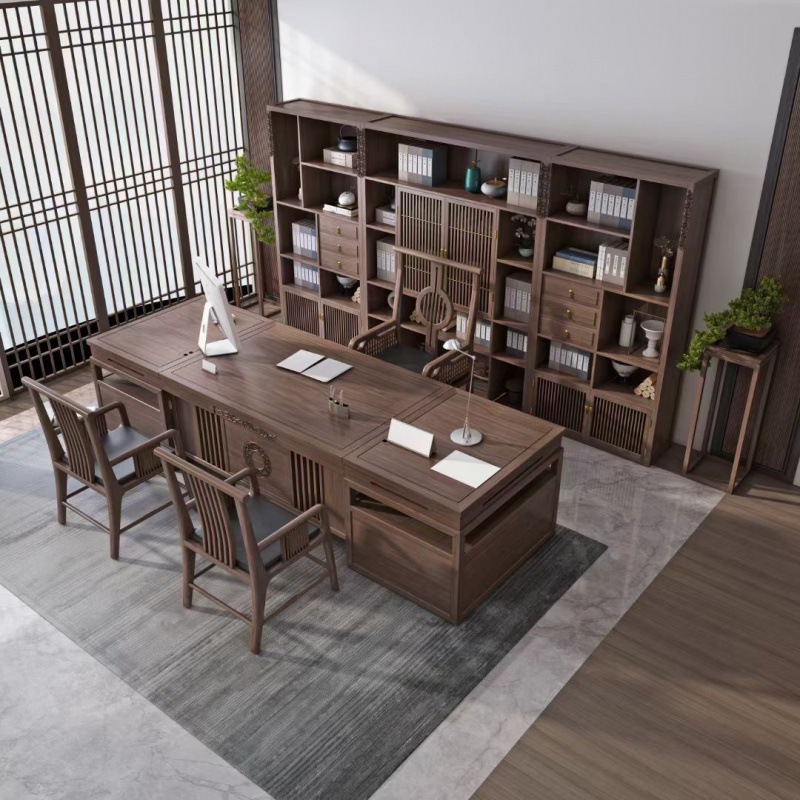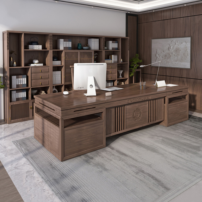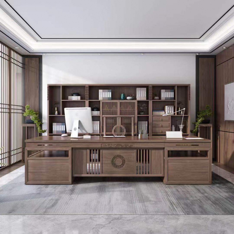 Phong cách Trung Quốc mới bàn làm việc bằng gỗ nguyên khối bàn sếp không khí hiện đại bàn điều hành bàn chủ tịch bàn nội thất văn phòng Zen