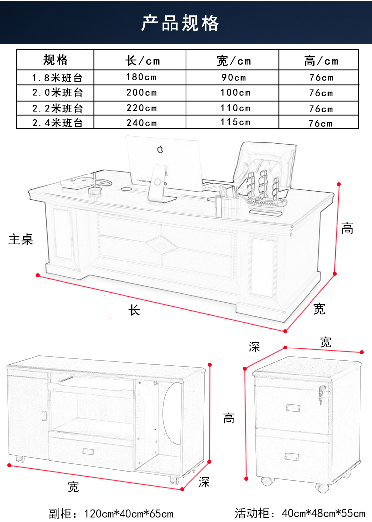 Phong cách Trung Quốc mới bàn ông chủ sơn bàn điều hành đơn giản hiện đại bàn quản lý 2m Bàn chủ tịch 1,8m và ghế kết hợp văn phòng