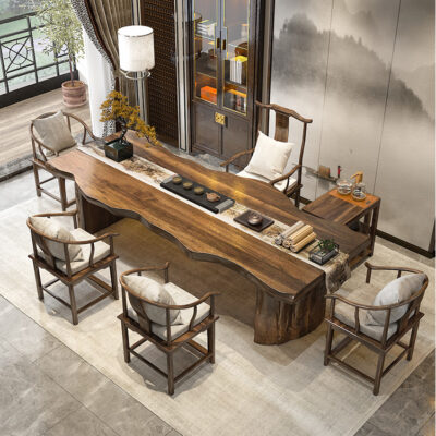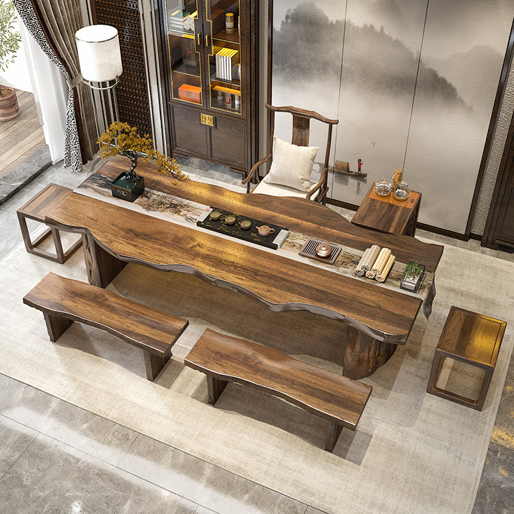 Phong cách Trung Quốc mới Bàn trà gỗ nguyên khối đầy đủ phòng khách gia đình đăng nhập bảng lớn Bàn trà văn phòng nhà kung fu Bàn trà Bàn trà và ghế