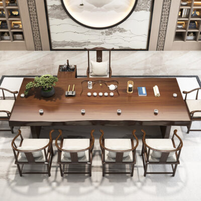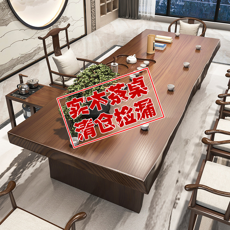 Phong cách Trung Quốc mới bằng gỗ lớn bàn trà và ghế văn phòng tiếp tân bàn trà bằng gỗ nguyên bộ đầy đủ của nhà bàn trà bên tự nhiên bàn trà