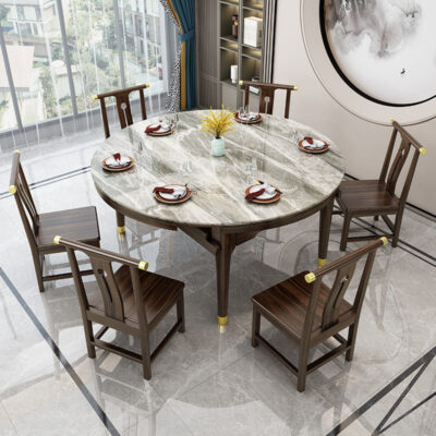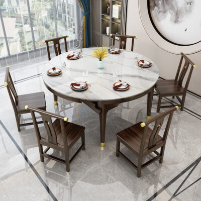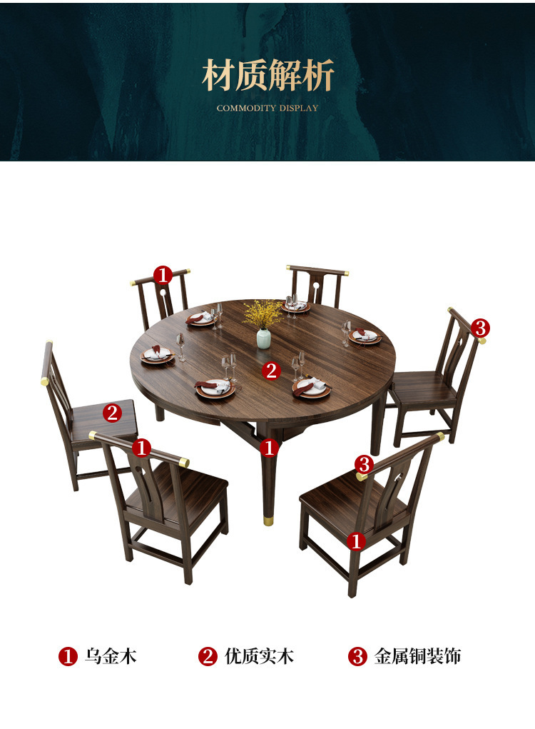 Phong cách Trung Quốc mới bằng gỗ mun gỗ nguyên khối bàn ăn và ghế kết hợp nhà hàng nhà căn hộ nhỏ vuông tròn bàn ăn gấp bằng kính thiên văn hai mục đích