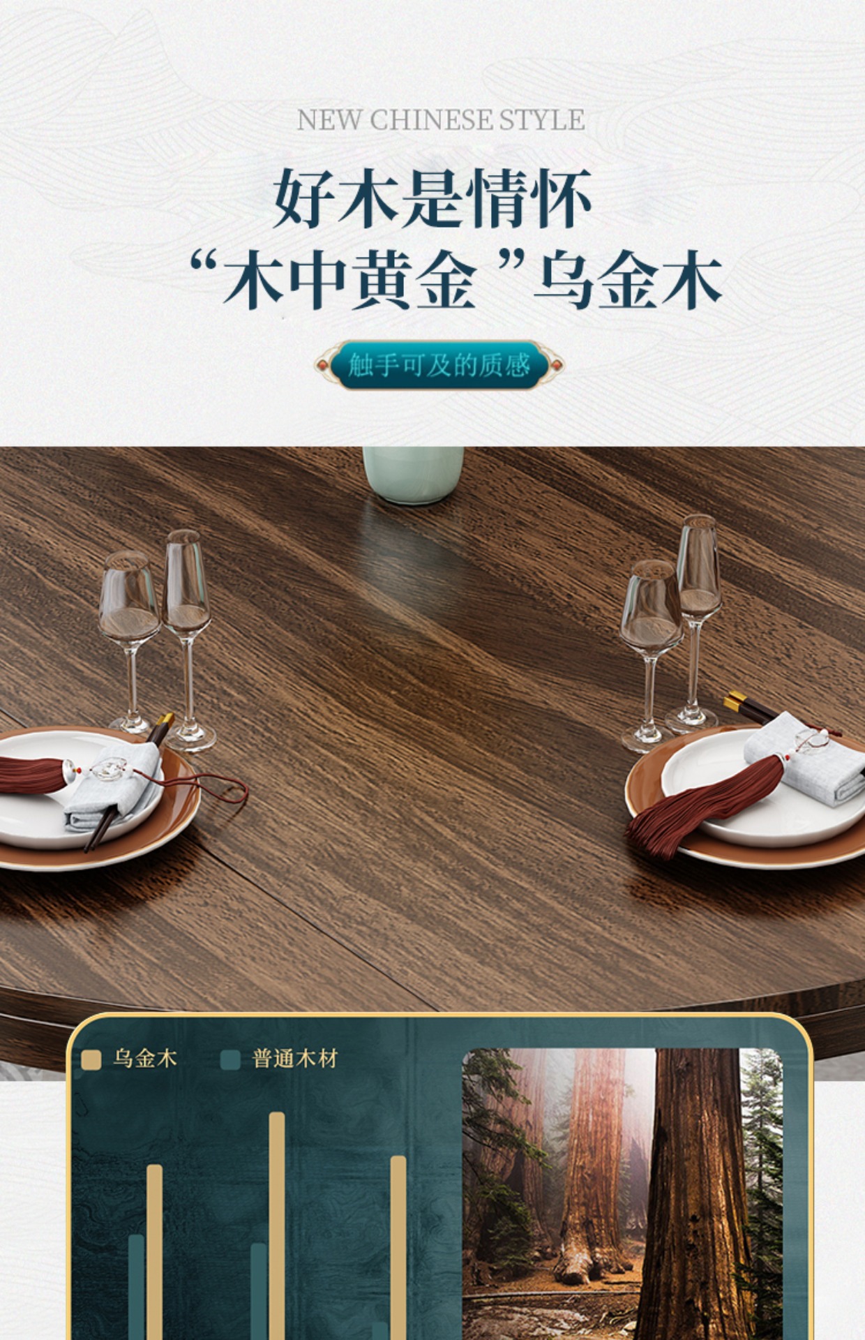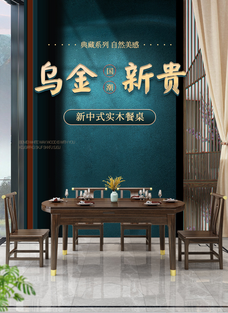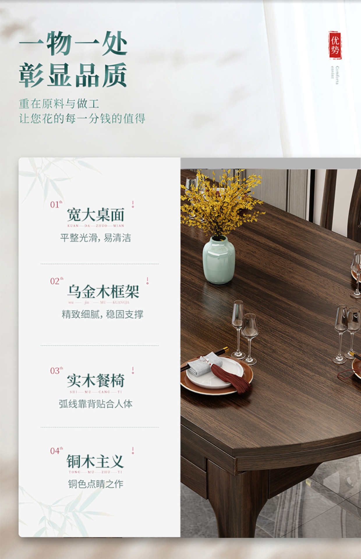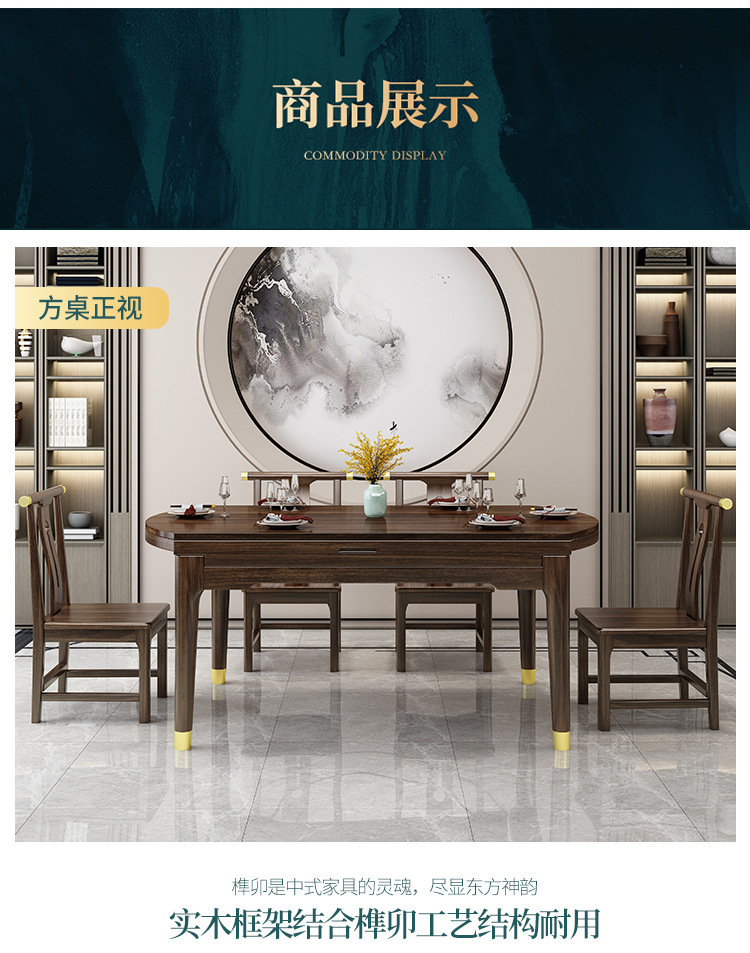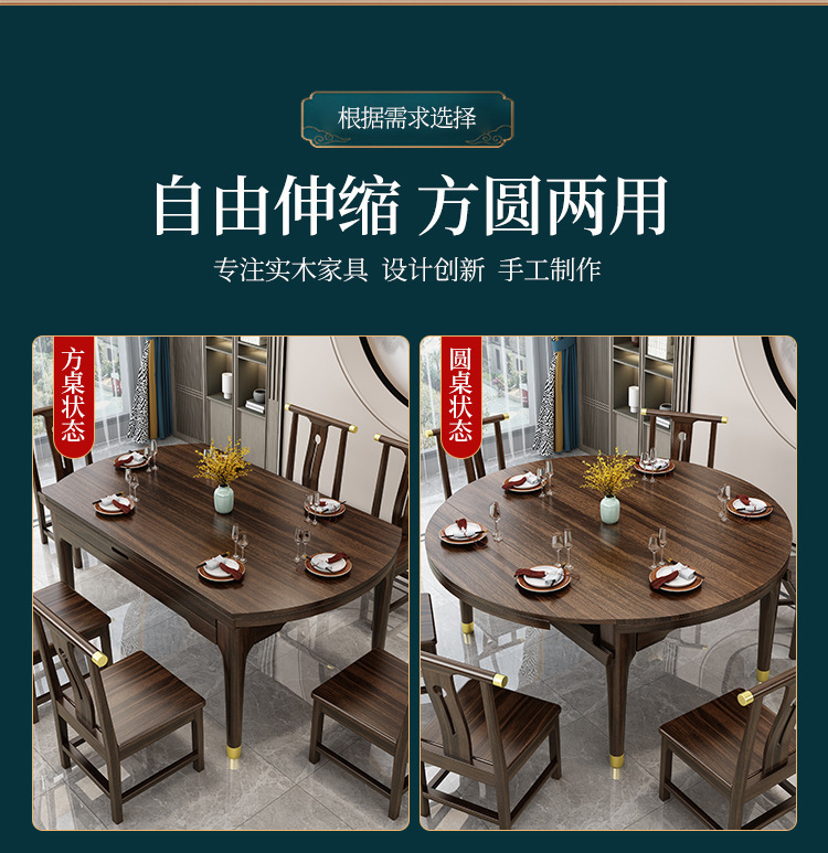 Phong cách Trung Quốc mới bằng gỗ mun gỗ nguyên khối bàn ăn và ghế kết hợp nhà hàng nhà căn hộ nhỏ vuông tròn bàn ăn gấp bằng kính thiên văn hai mục đích