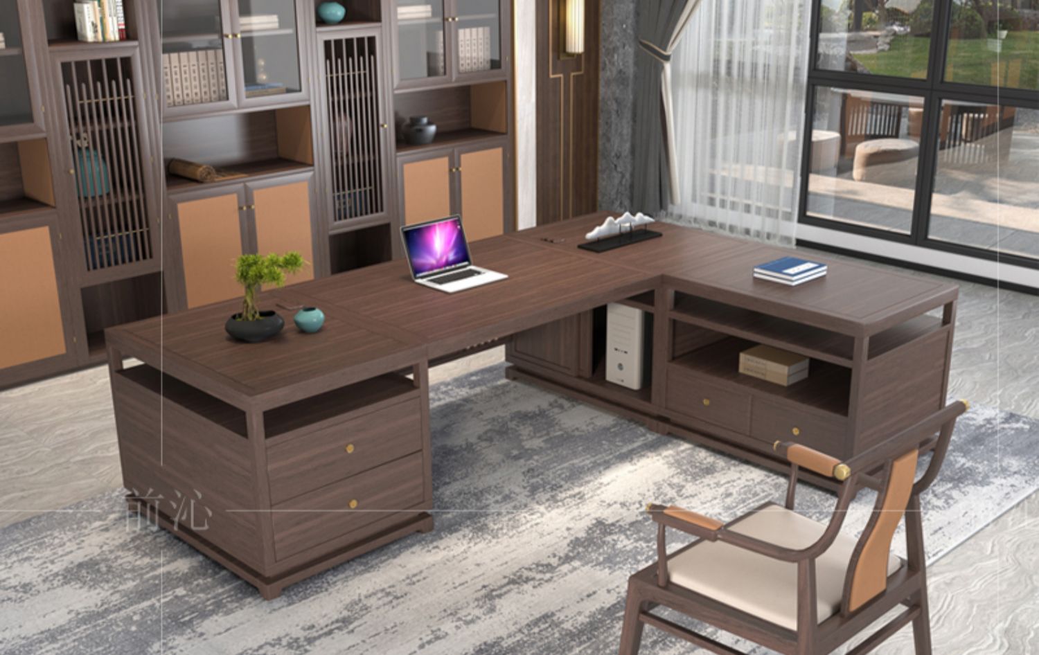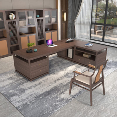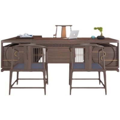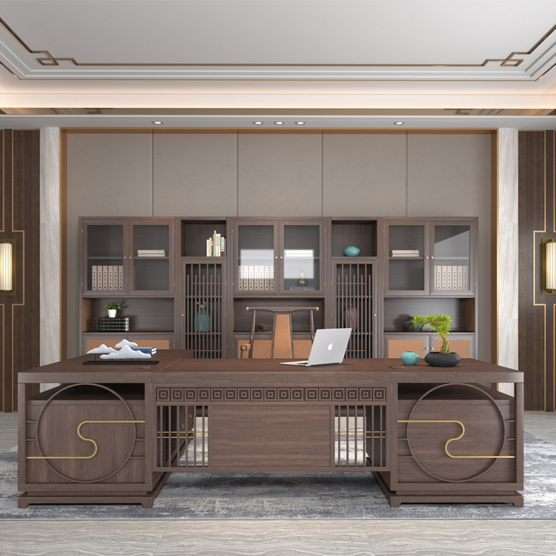 Phong cách Trung Quốc mới bằng gỗ nguyên khối bàn sếp bàn chủ tịch điều hành Zen không khí đơn giản hiện đại kết hợp bàn và ghế tổng giám đốc
