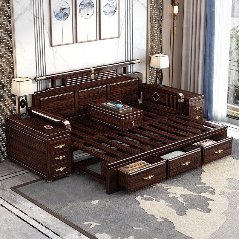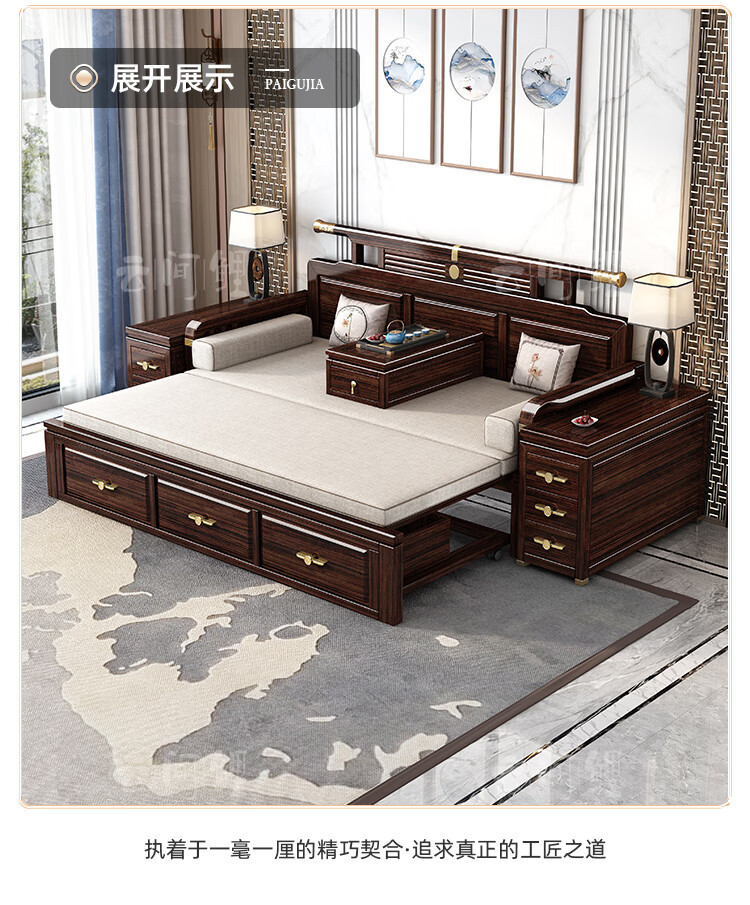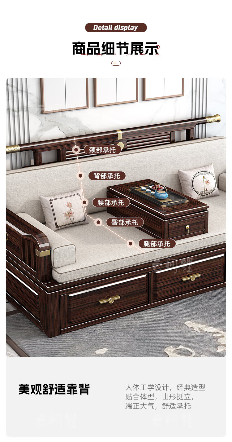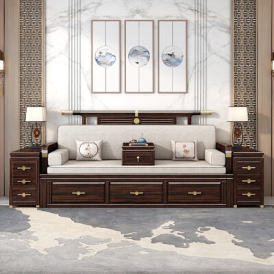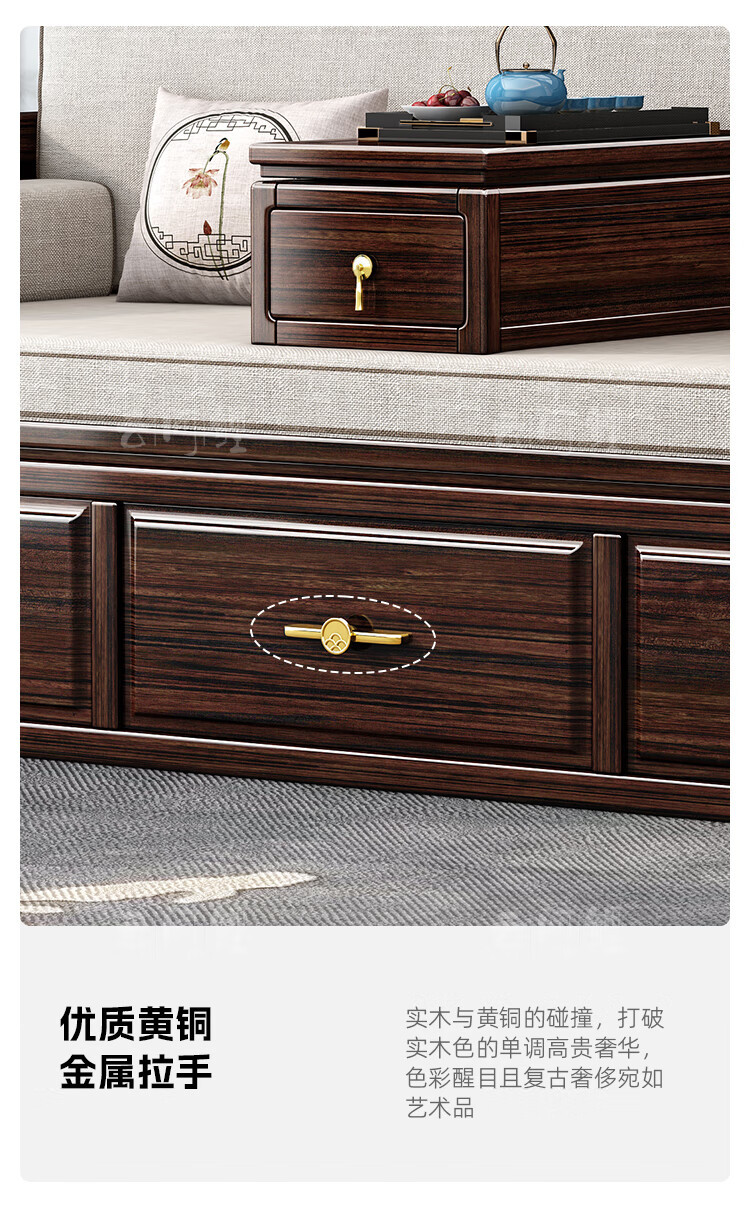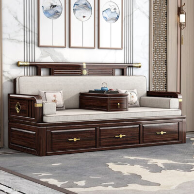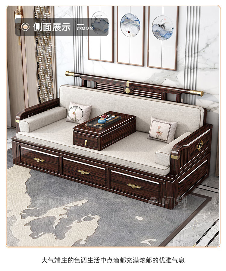Phong cách Trung Quốc mới bằng gỗ nguyên khối Giường La Hán Ghế La Hán căn hộ nhỏ Zen kéo đẩy kính thiên văn giường sofa đôi gỗ đàn hương vàng tím