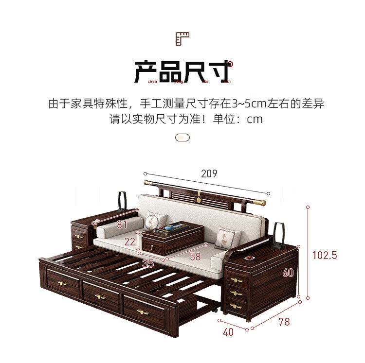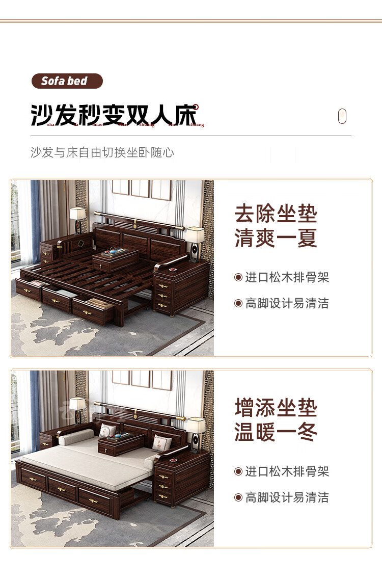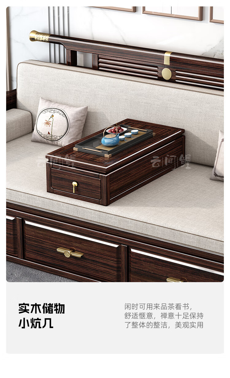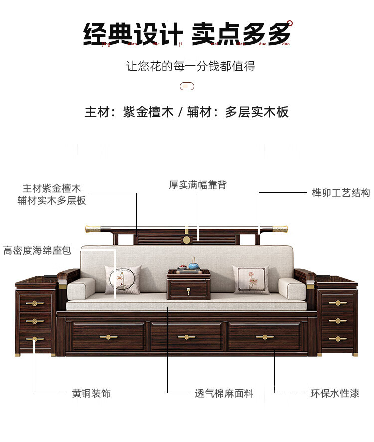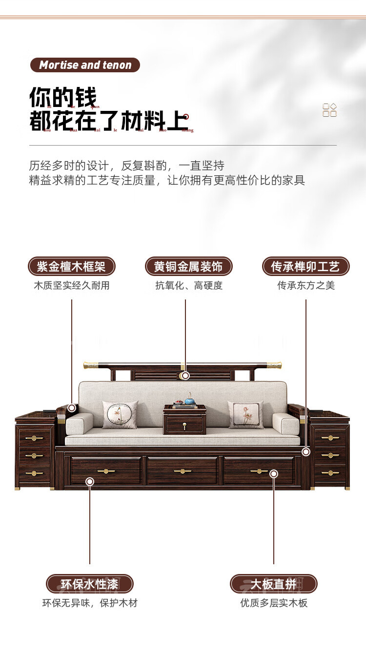 Phong cách Trung Quốc mới bằng gỗ nguyên khối Giường La Hán Ghế La Hán căn hộ nhỏ Zen kéo đẩy kính thiên văn giường sofa đôi gỗ đàn hương vàng tím