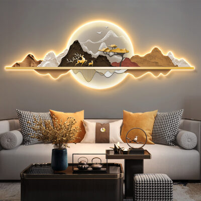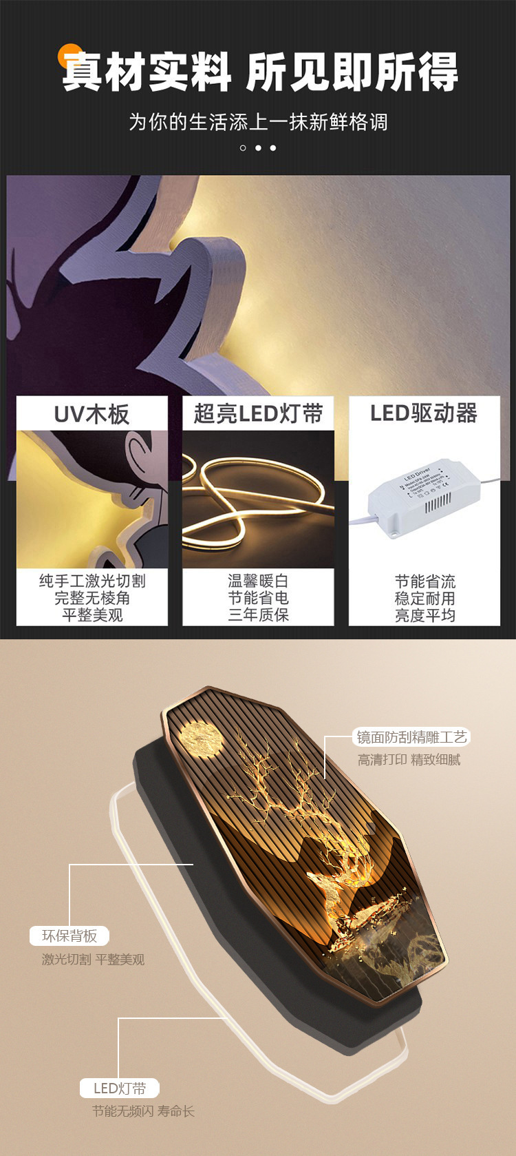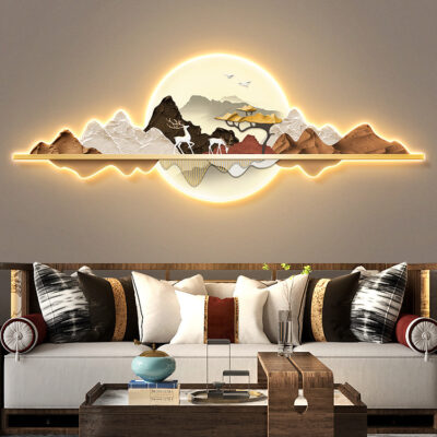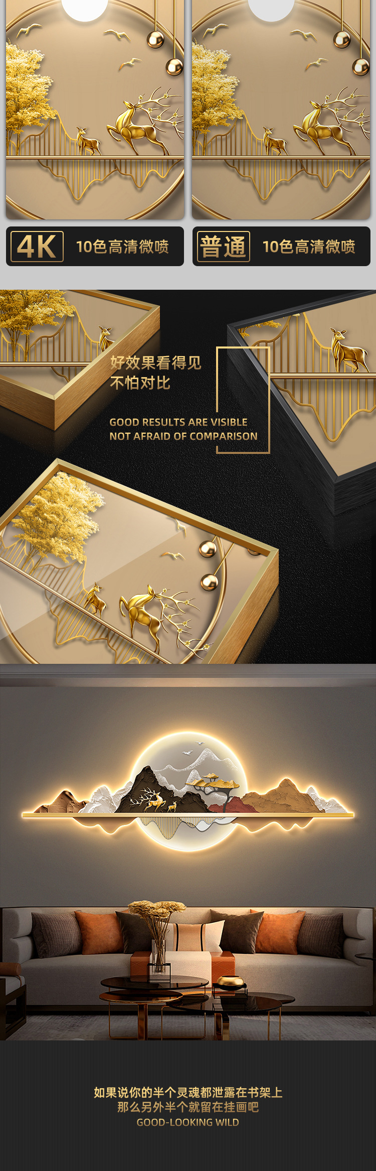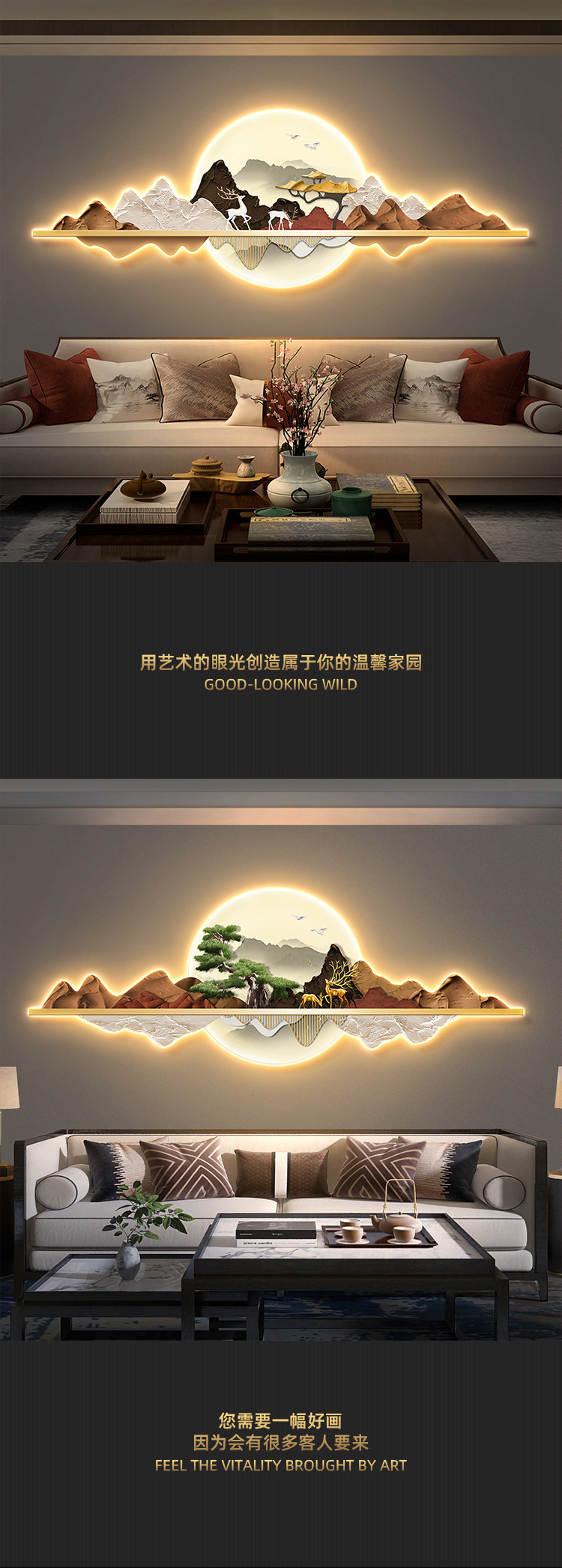 Phong cách Trung Quốc mới chào mừng cây thông trang trí phòng khách ánh sáng kết cấu sang trọng phong cảnh sofa nền treo tường mặt dây chuyền đèn hươu cao cấp