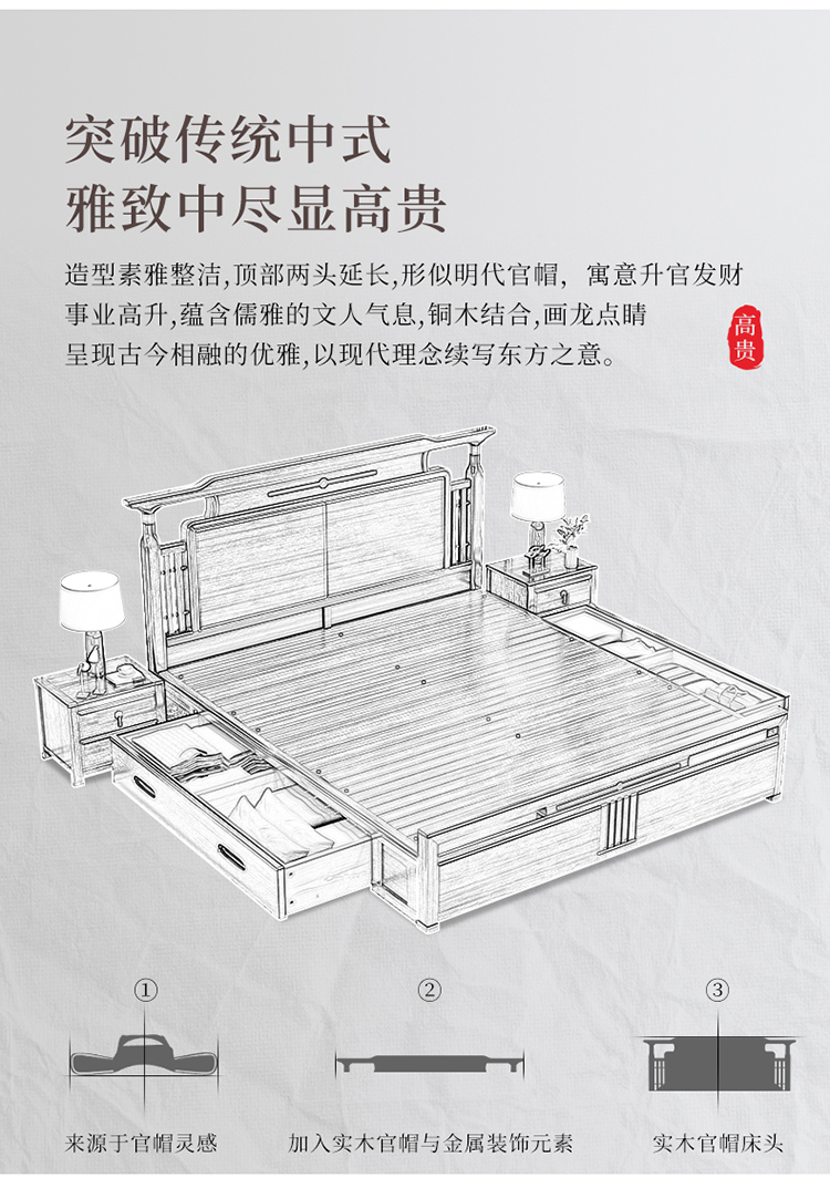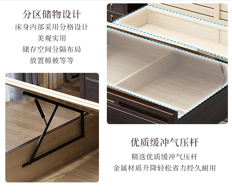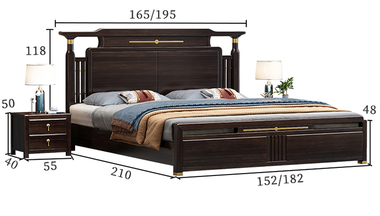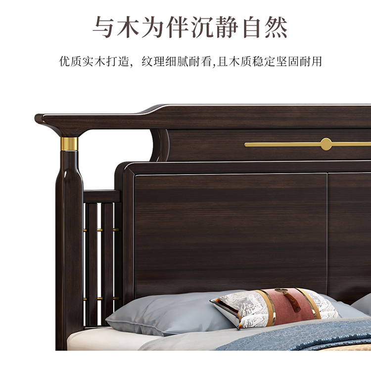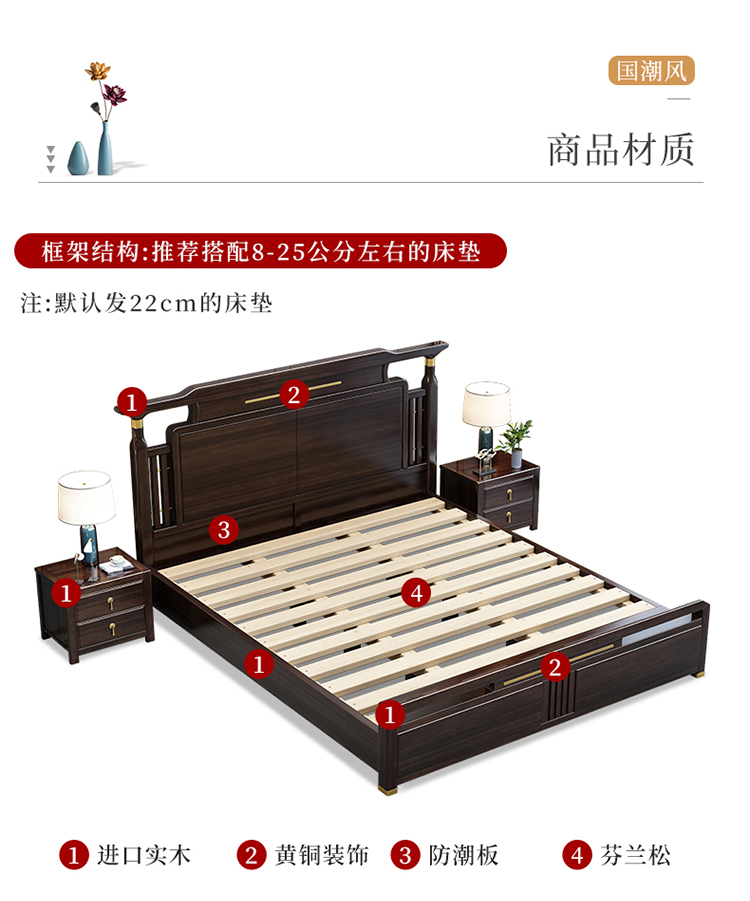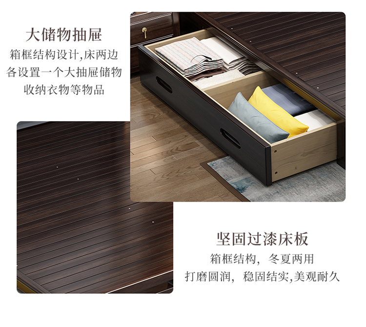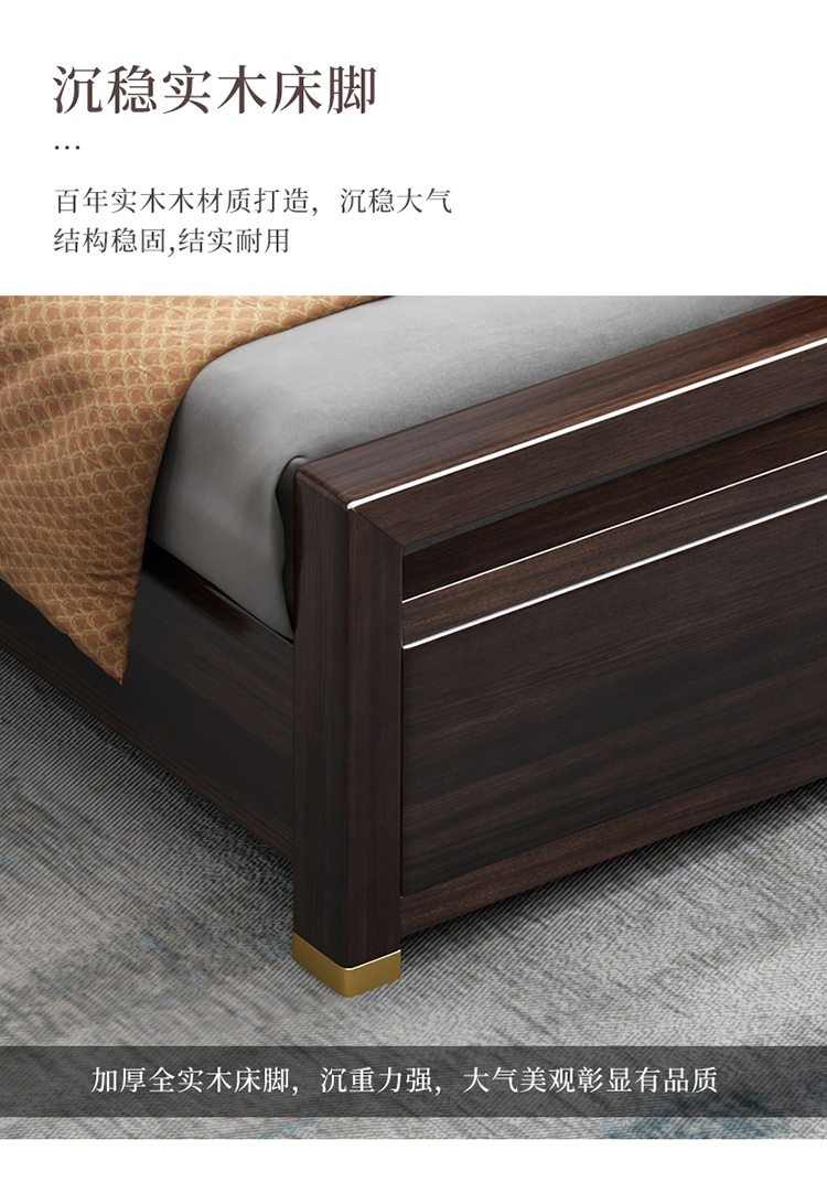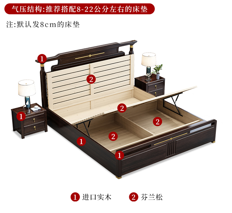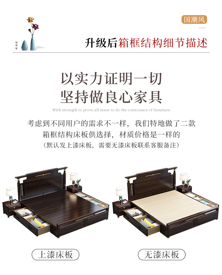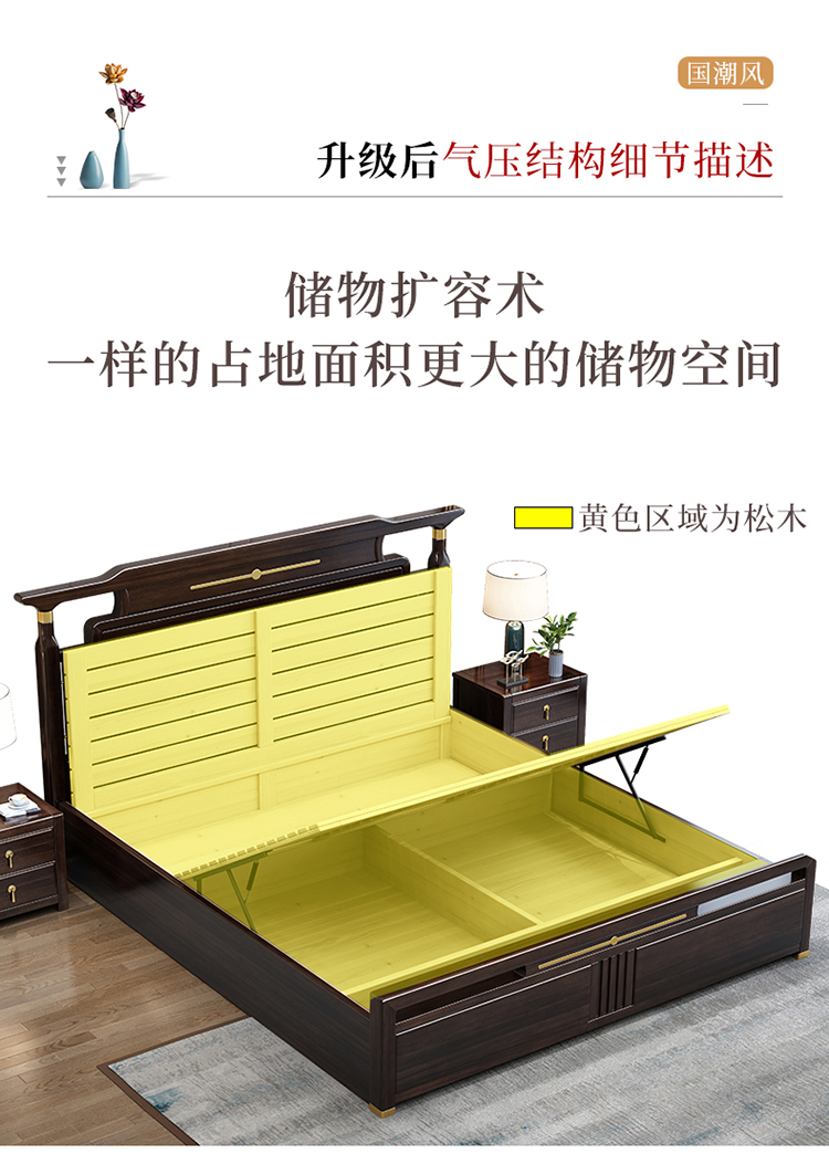 Phong cách Trung Quốc mới giường gỗ rắn 1,8 mét đơn giản hiện đại phong cách Trung Quốc đôi giường cưới lớn hộp cao lưu trữ đồ nội thất phòng ngủ chính