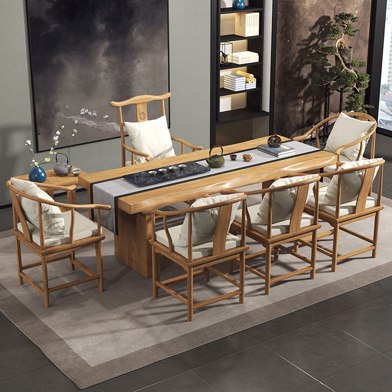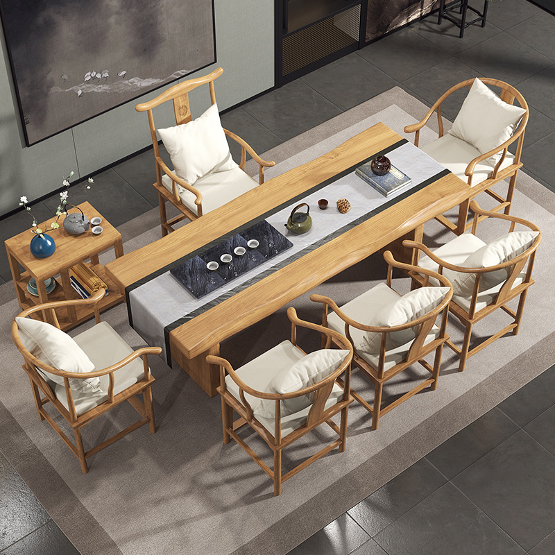 Phong cách Trung Quốc mới gỗ đặc phiến lớn mặt tự nhiên bàn cà phê bàn ghế kết hợp Bàn trà gia đình Giới thiệu về Bàn trà văn phòng thương mại