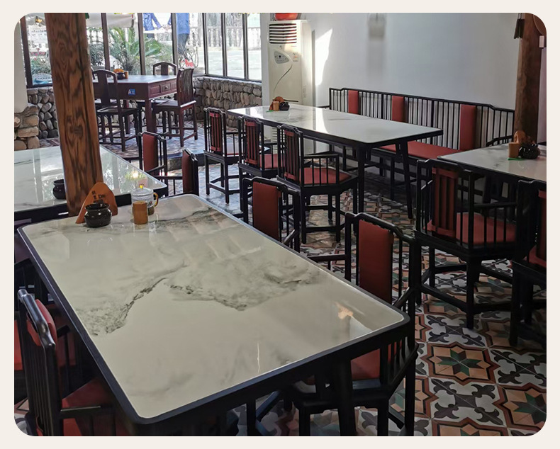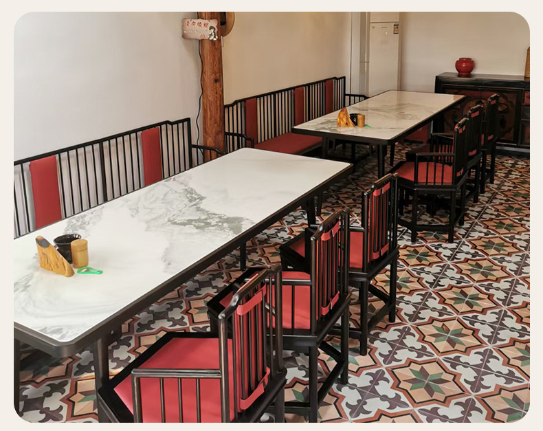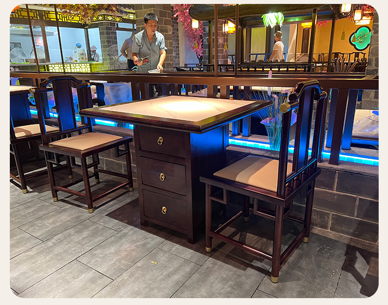 Phong cách Trung Quốc mới Guochao Hồ Nam ẩm thực thẻ ghế sofa dựa vào tường chủ đề phục vụ đồ nướng cửa hàng lẩu nhà hàng trà bộ bàn ghế ăn hoàn chỉnh