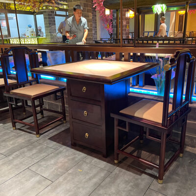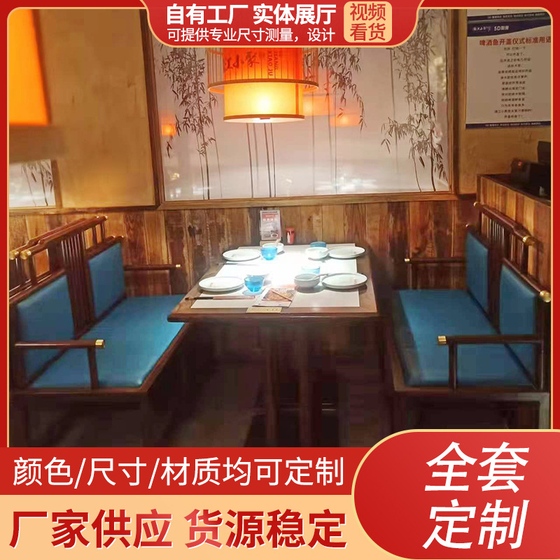 Phong cách Trung Quốc mới Guochao Hồ Nam ẩm thực thẻ ghế sofa dựa vào tường chủ đề phục vụ đồ nướng cửa hàng lẩu nhà hàng trà bộ bàn ghế ăn hoàn chỉnh