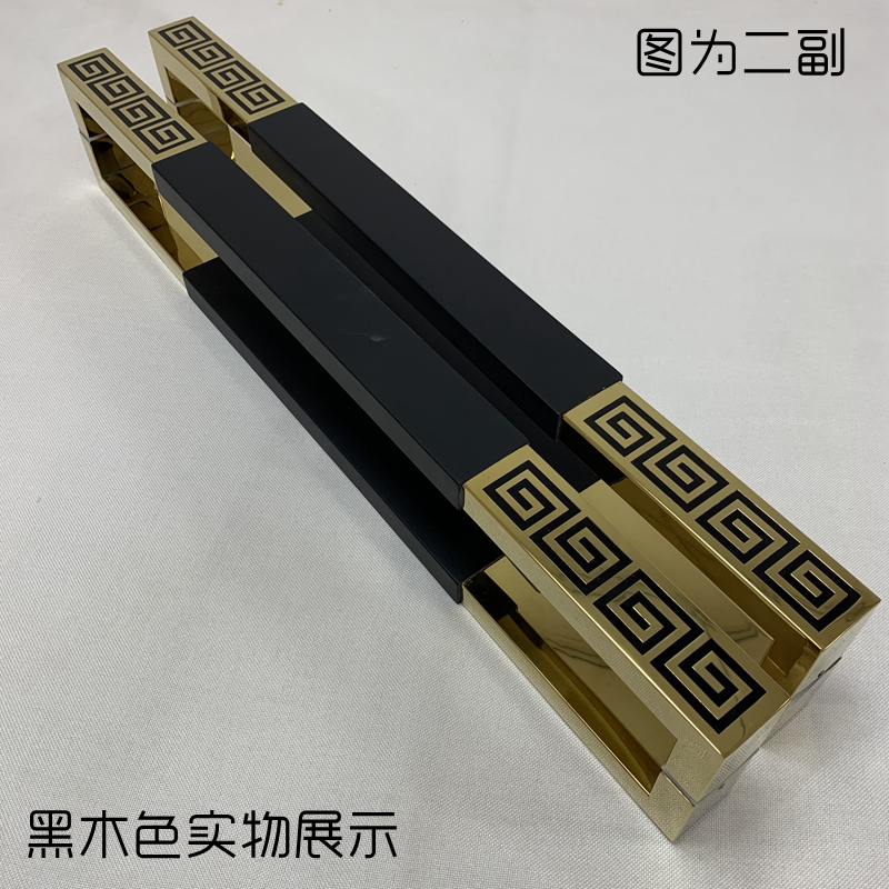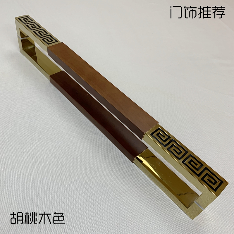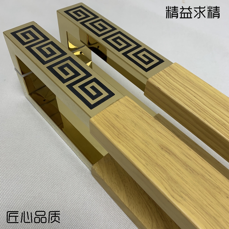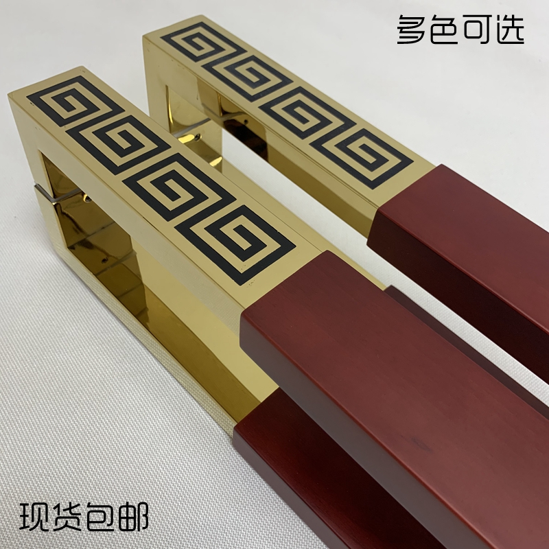 Phong cách Trung Quốc mới hiện đại bằng gỗ rắn tay nắm cửa kính đơn giản cửa trượt bằng thép không gỉ tay nắm chữ tùy chỉnh LOGO