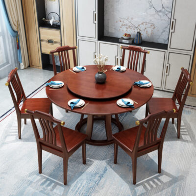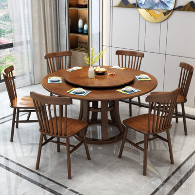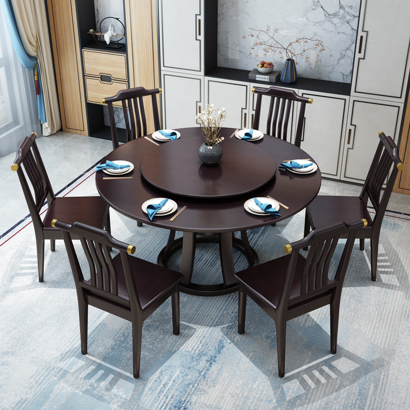 Phong cách Trung Quốc mới hoàn toàn bằng gỗ nguyên khối bàn tròn với bàn xoay ăn uống tại nhà bàn tròn lớn khách sạn nhà hàng bàn ăn tròn và ghế kết hợp