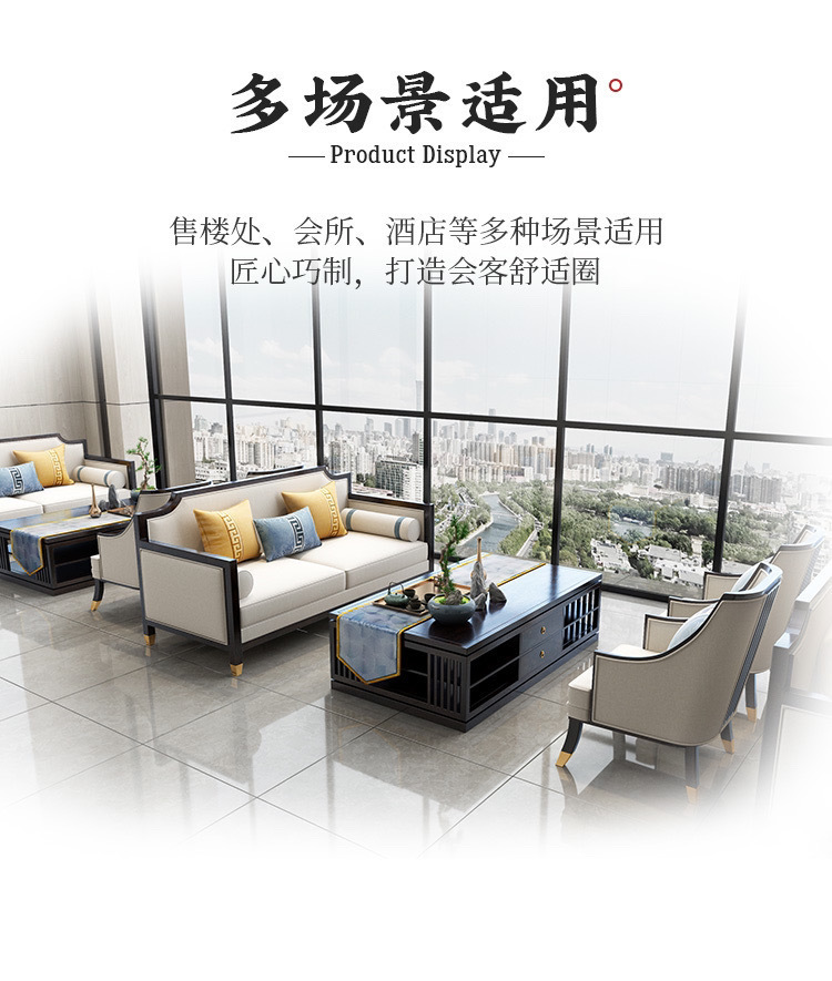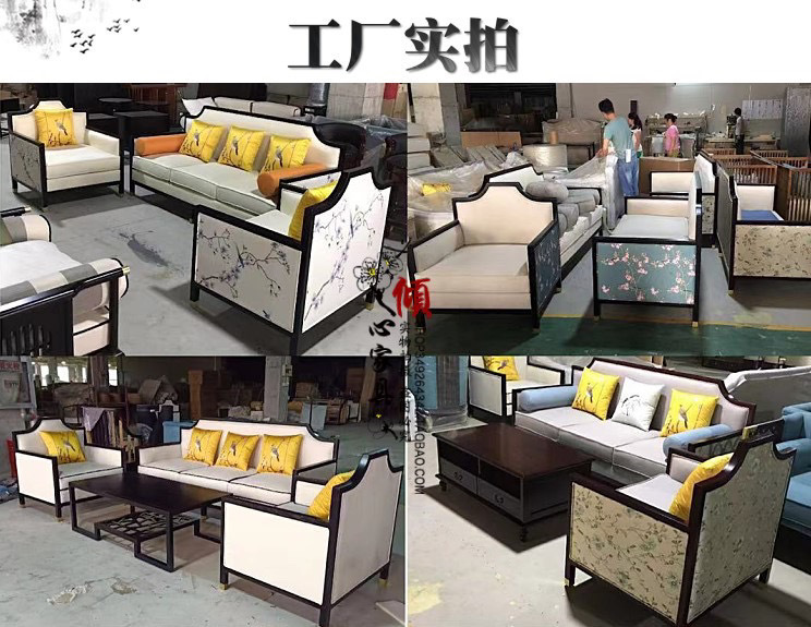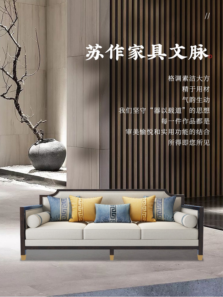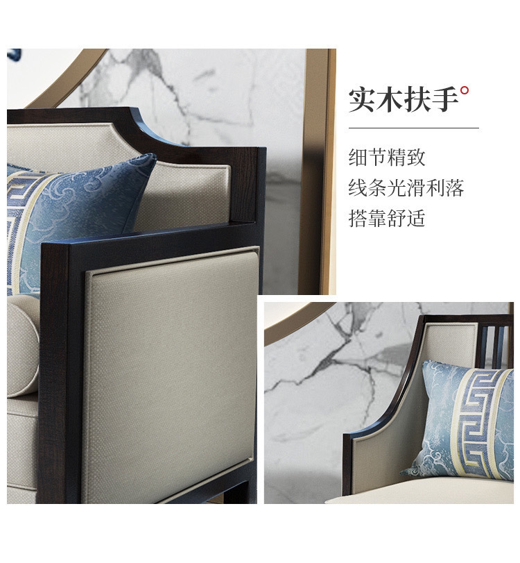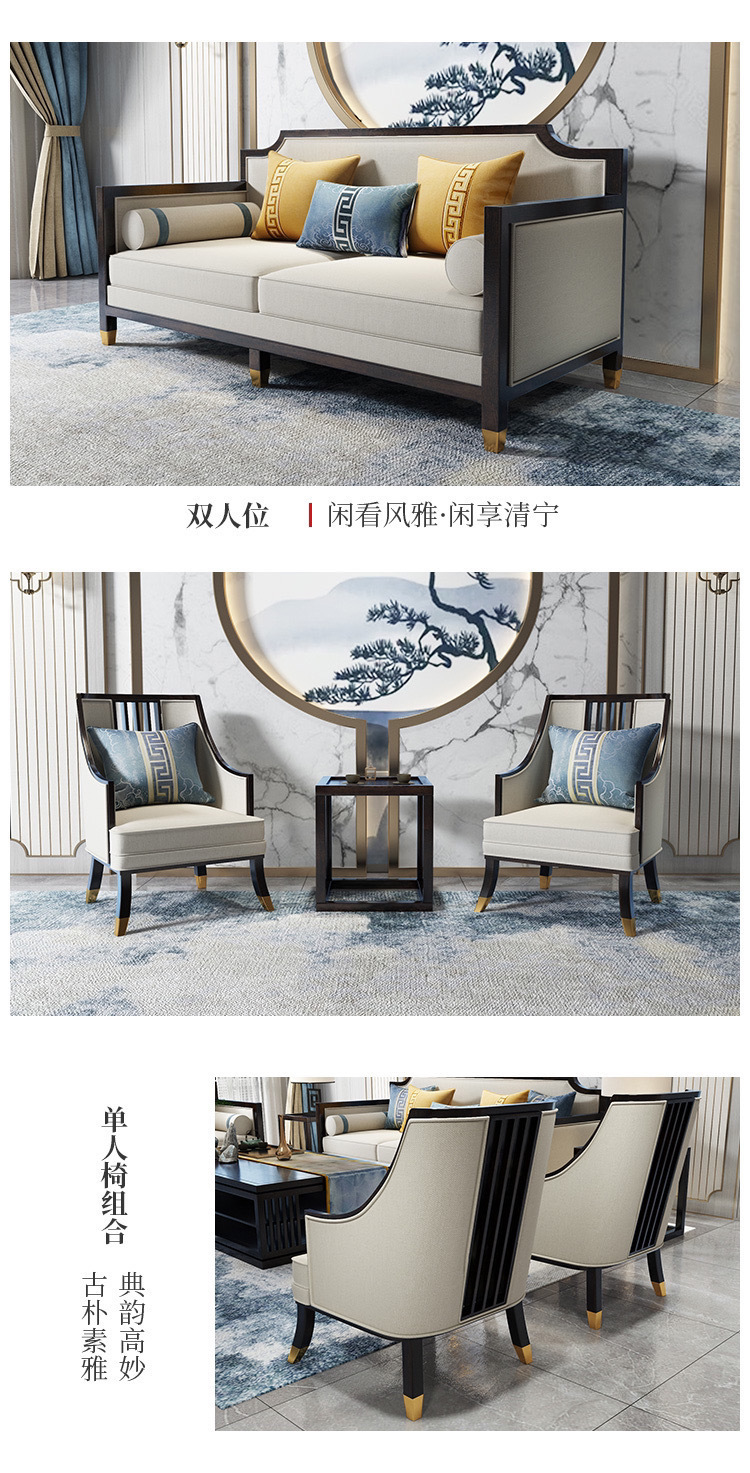 Phong cách Trung Quốc mới kết hợp ghế sofa gỗ phòng khách hiện đại căn hộ nhỏ vải đẹp mô hình sang trọng phòng kinh doanh văn phòng đồ nội thất khách sạn