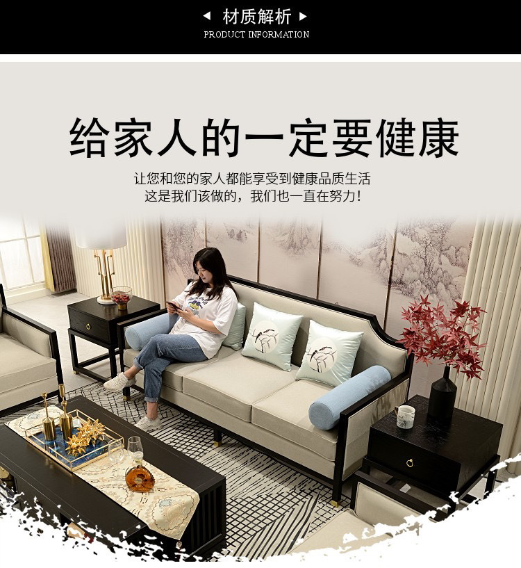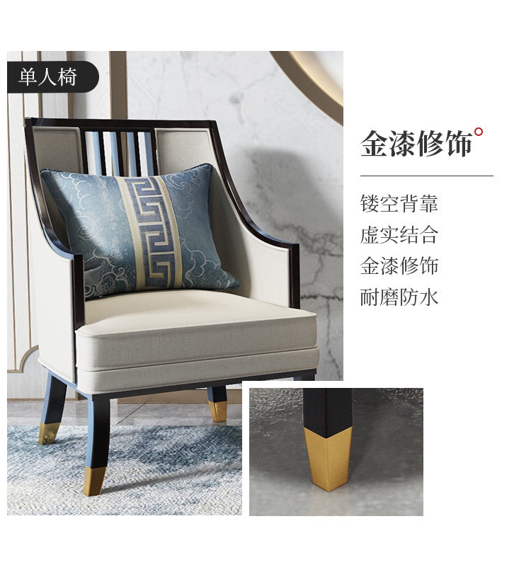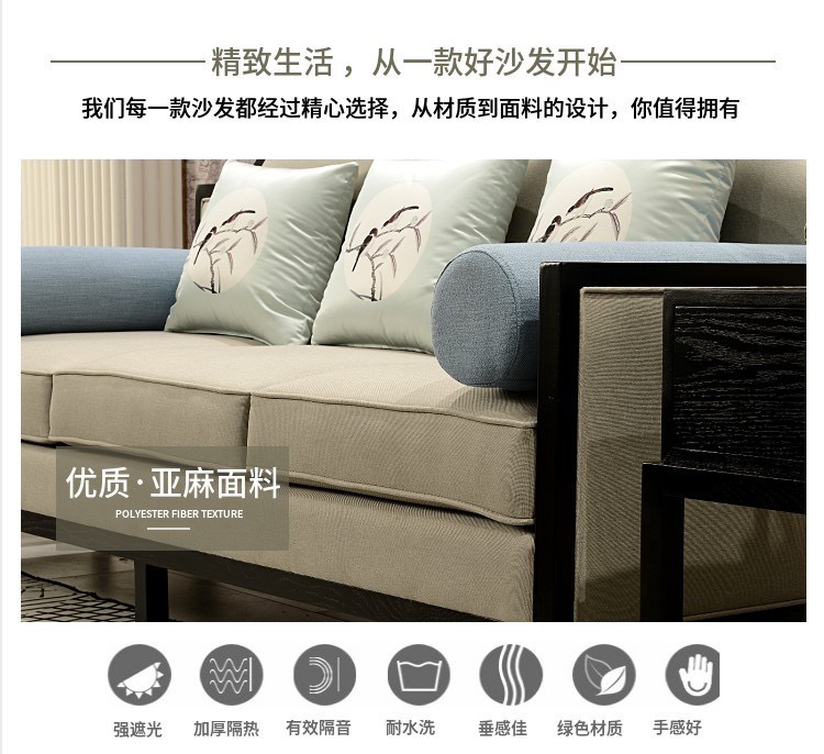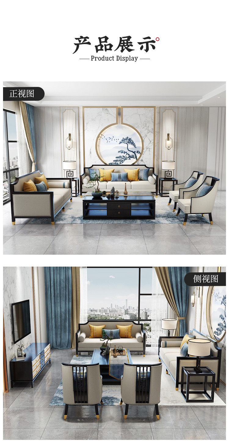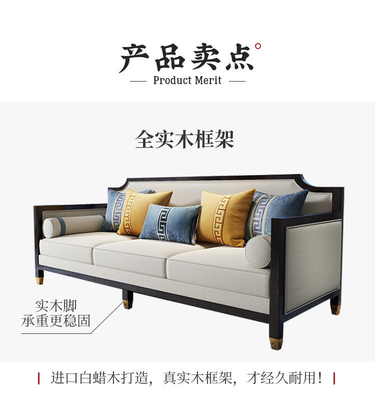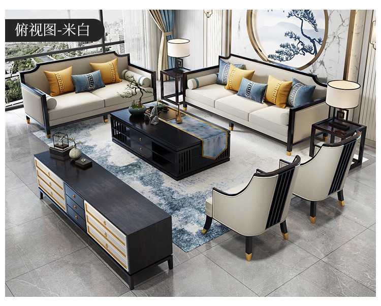 Phong cách Trung Quốc mới kết hợp ghế sofa gỗ phòng khách hiện đại căn hộ nhỏ vải đẹp mô hình sang trọng phòng kinh doanh văn phòng đồ nội thất khách sạn