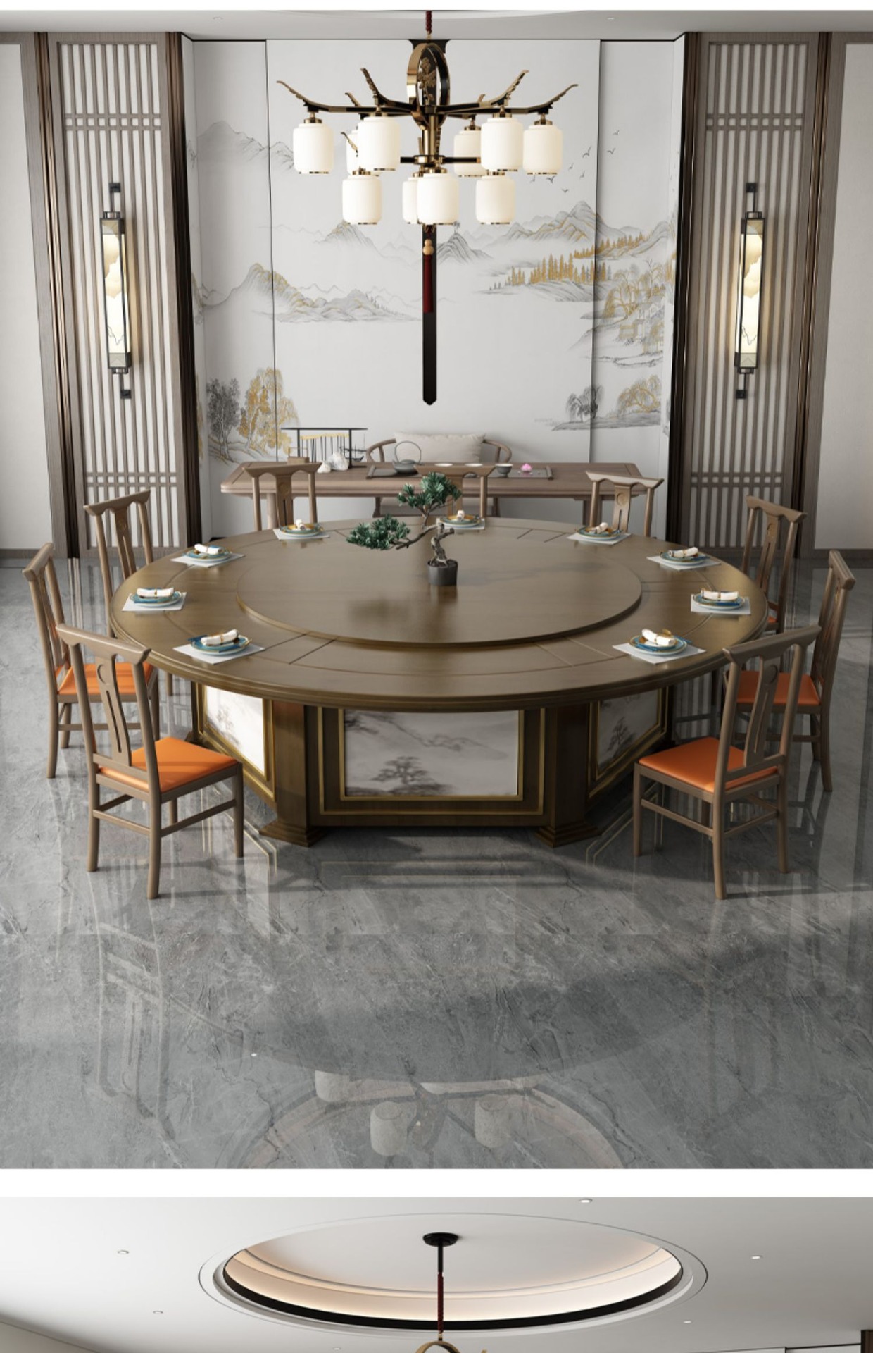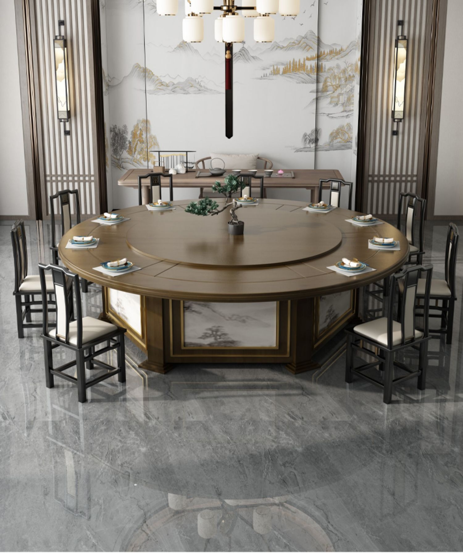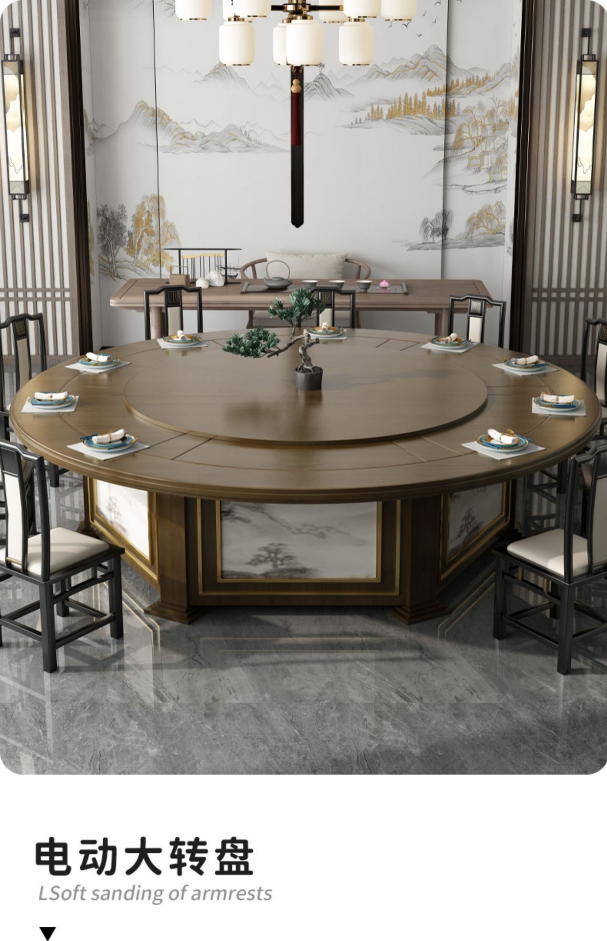 Phong cách Trung Quốc mới khách sạn bàn gỗ Bàn xoay điện nhà hàng khách sạn bàn tròn lớn câu lạc bộ 15 người 20 người kết hợp bàn ghế là sản phẩm nổi bật trong dòng bàn ăn nhập khẩu, thiết kế hiện đại và sang trọng, phù hợp với nhiều không gian nội thất cao cấp.