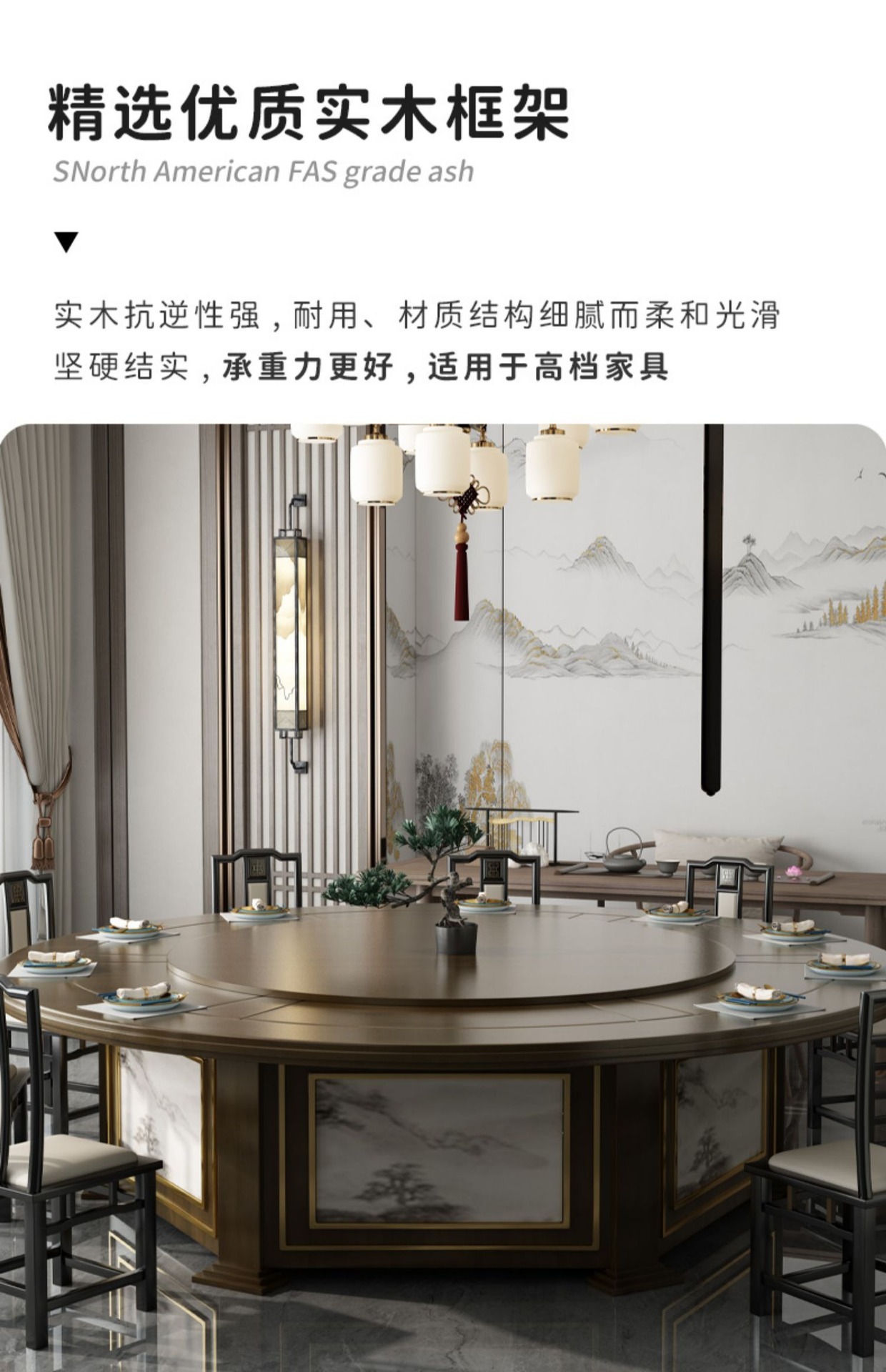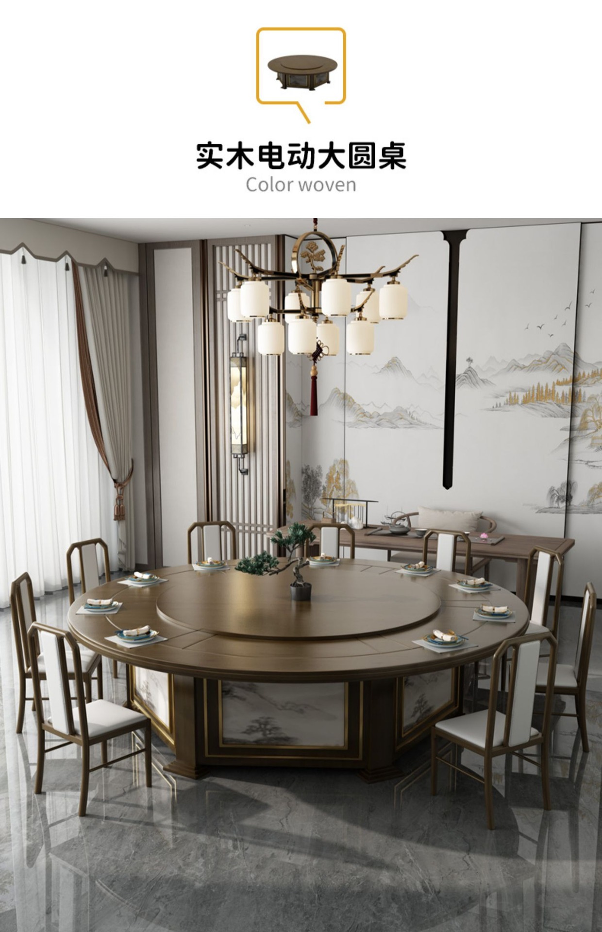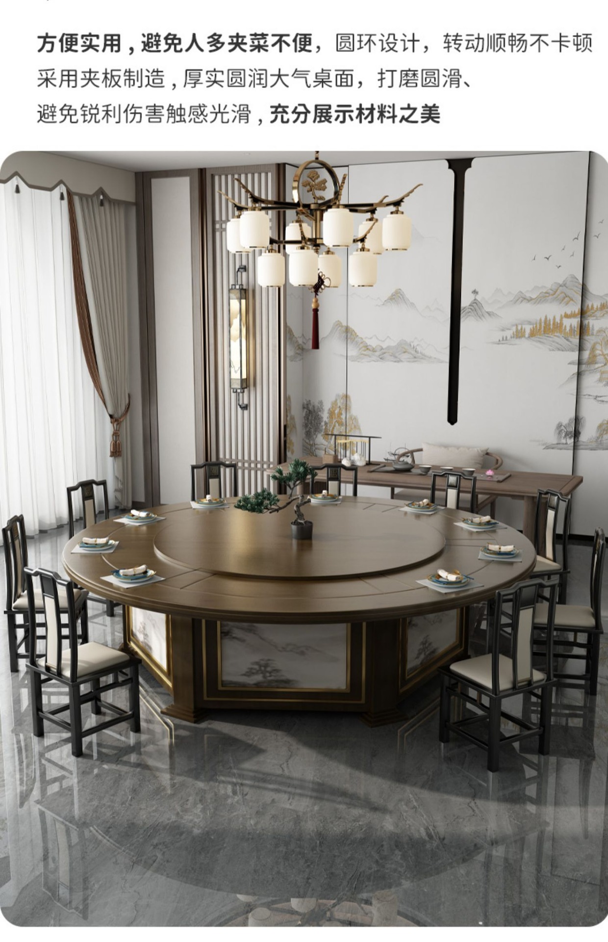 Phong cách Trung Quốc mới khách sạn bàn gỗ Bàn xoay điện nhà hàng khách sạn bàn tròn lớn câu lạc bộ 15 người 20 người kết hợp bàn ghế là sản phẩm nổi bật trong dòng bàn ăn nhập khẩu, thiết kế hiện đại và sang trọng, phù hợp với nhiều không gian nội thất cao cấp.