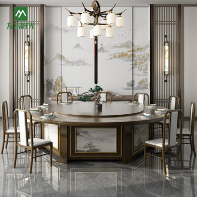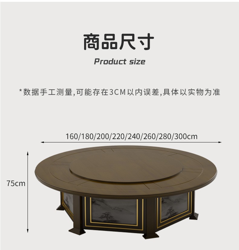 Phong cách Trung Quốc mới khách sạn bàn gỗ Bàn xoay điện nhà hàng khách sạn bàn tròn lớn câu lạc bộ 15 người 20 người kết hợp bàn ghế – Bàn ăn nhập khẩu cao cấp
