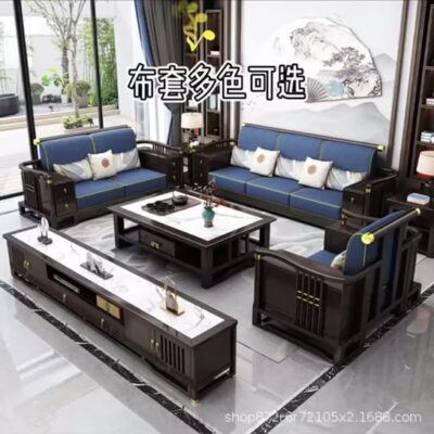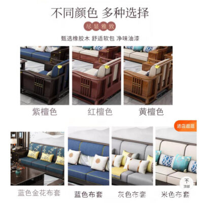 Phong cách Trung Quốc mới nhẹ nhàng sang trọng tất cả sự kết hợp ghế sofa gỗ nguyên khối kết hợp bàn ghế phòng khách phong cách Trung Quốc hiện đại Bộ ghế sofa bằng gỗ cộng với vải Xu hướng quốc gia mới