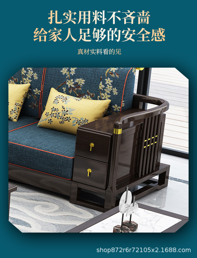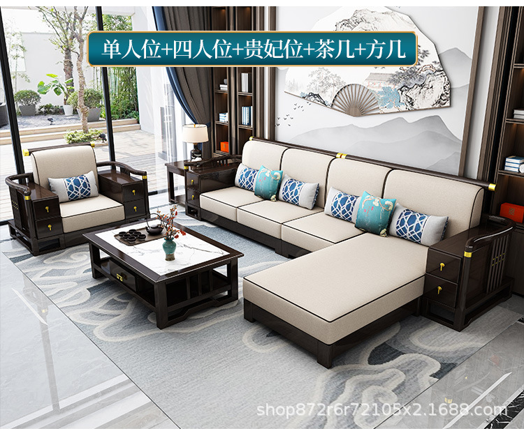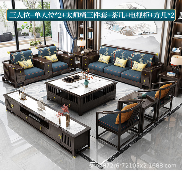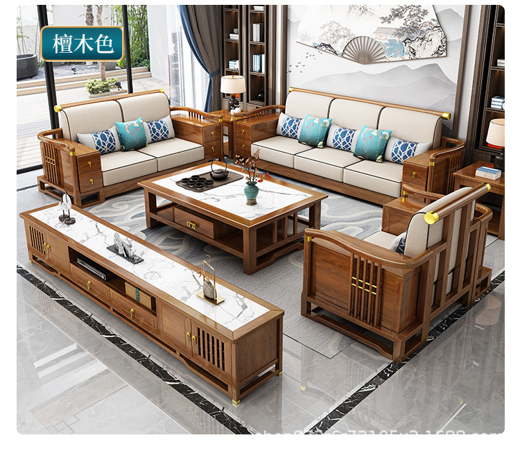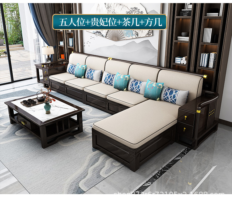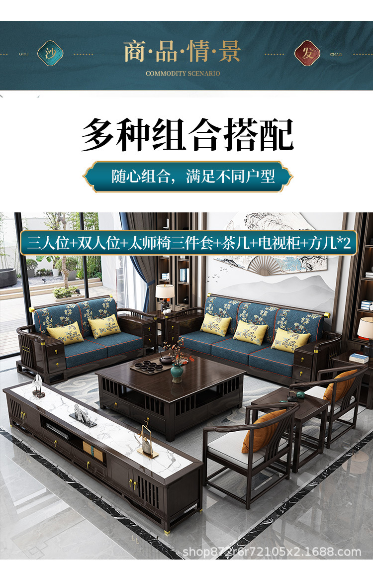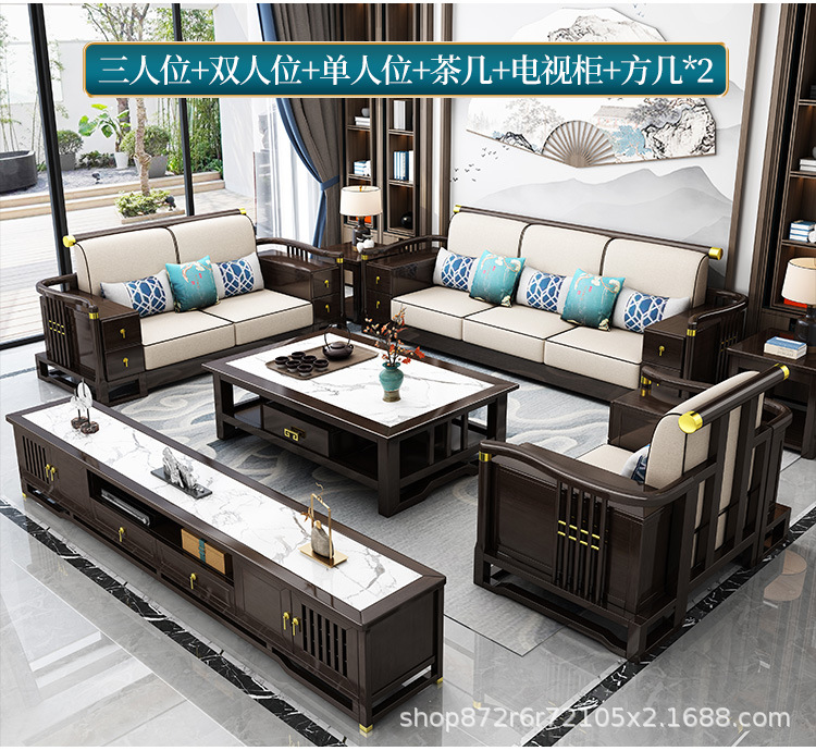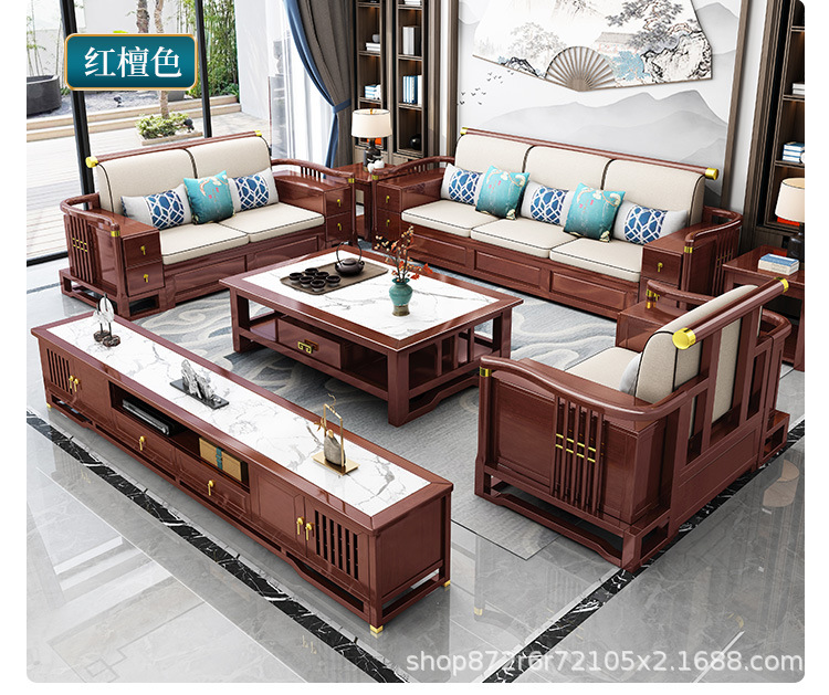 Phong cách Trung Quốc mới nhẹ nhàng sang trọng tất cả sự kết hợp ghế sofa gỗ nguyên khối kết hợp bàn ghế phòng khách phong cách Trung Quốc hiện đại Bộ ghế sofa bằng gỗ cộng với vải Xu hướng quốc gia mới