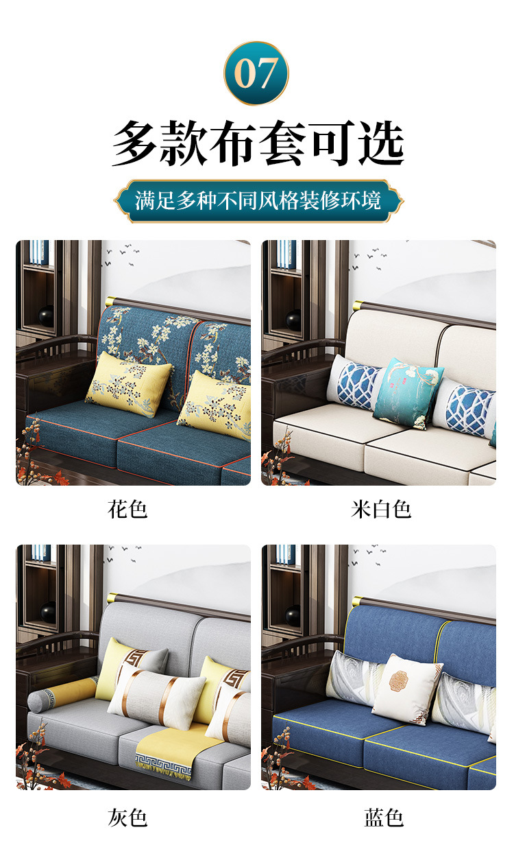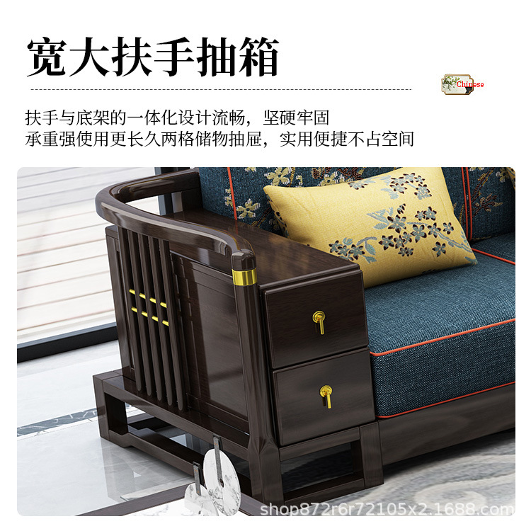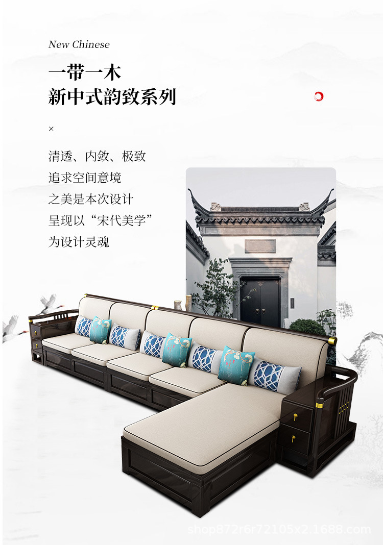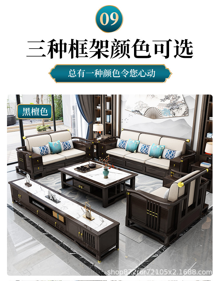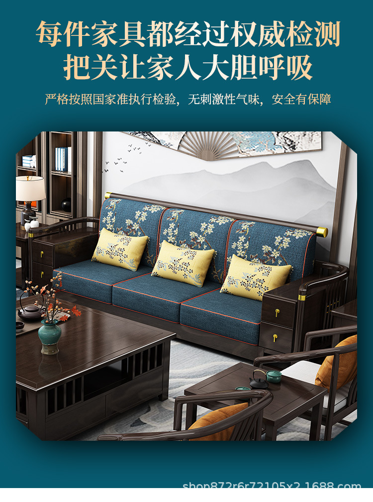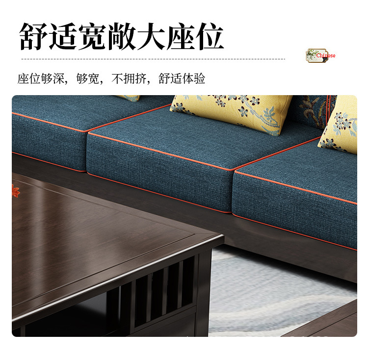 Phong cách Trung Quốc mới nhẹ nhàng sang trọng tất cả sự kết hợp ghế sofa gỗ nguyên khối kết hợp bàn ghế phòng khách phong cách Trung Quốc hiện đại Bộ ghế sofa bằng gỗ cộng với vải Xu hướng quốc gia mới