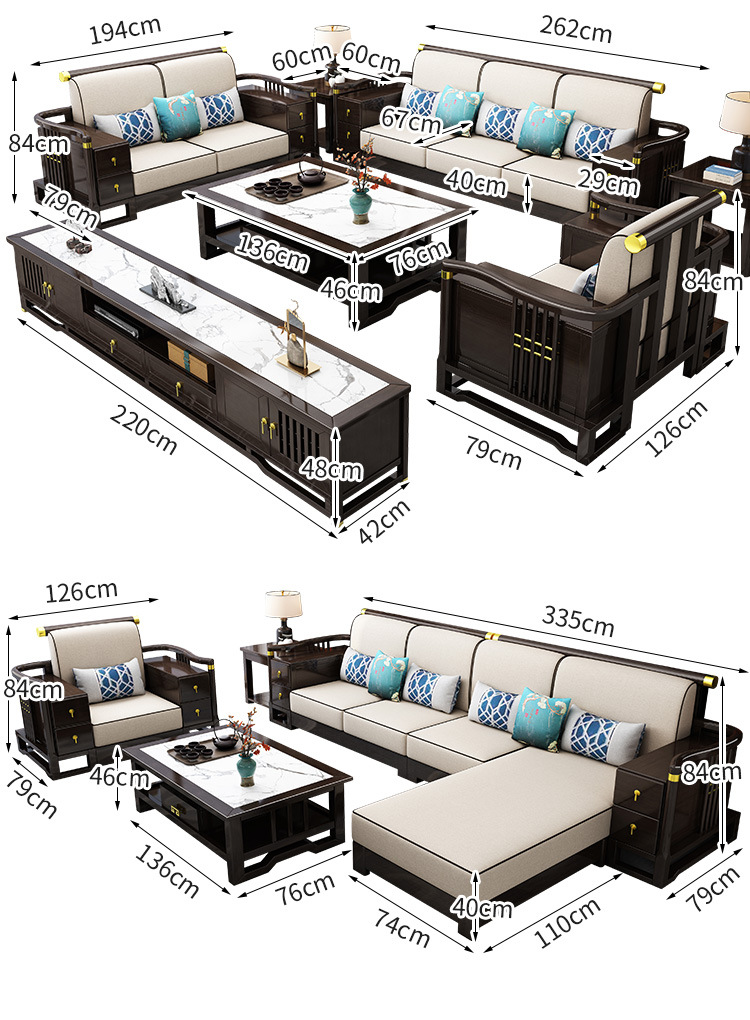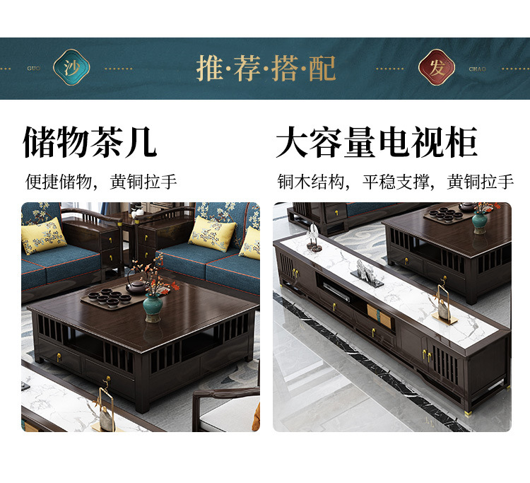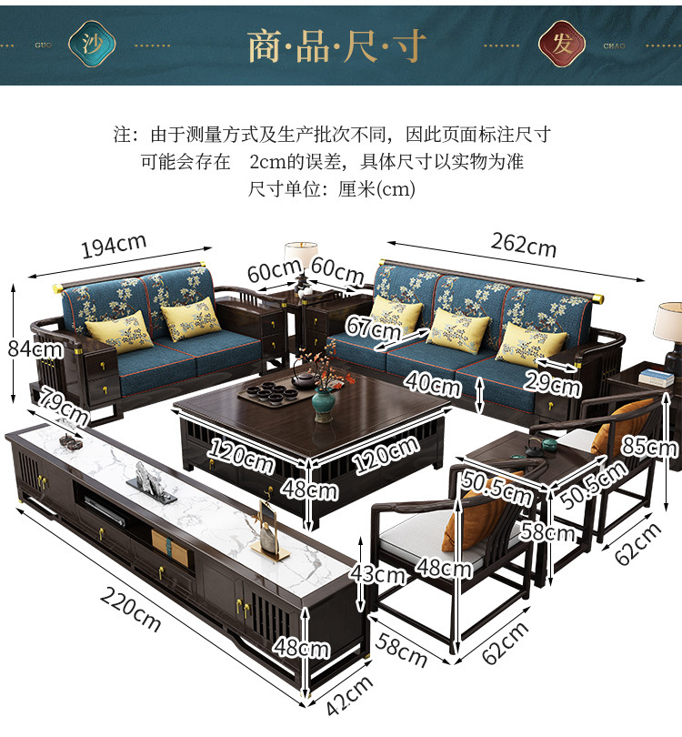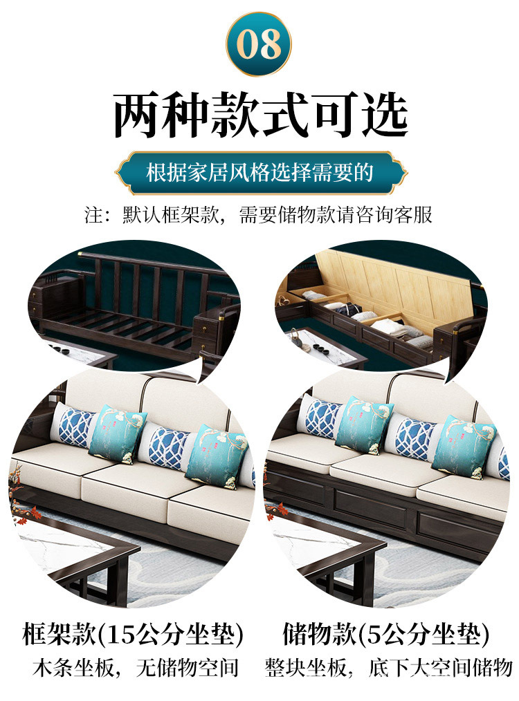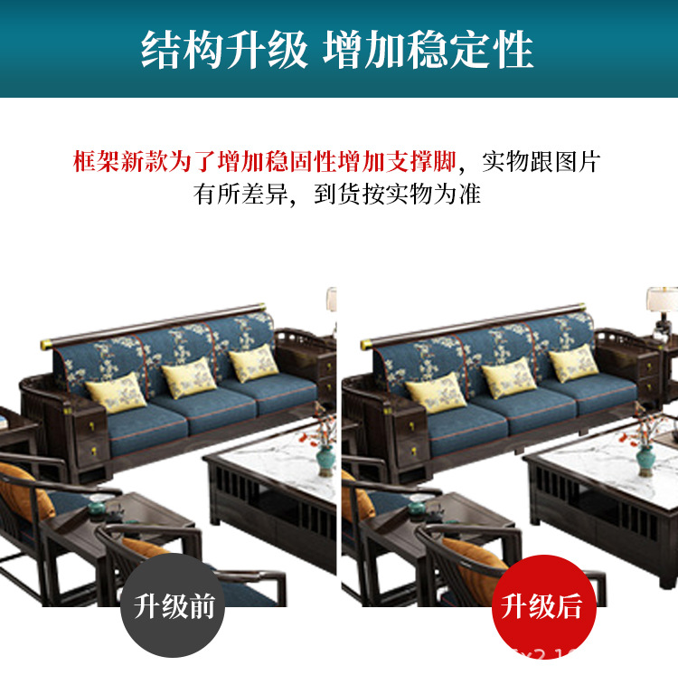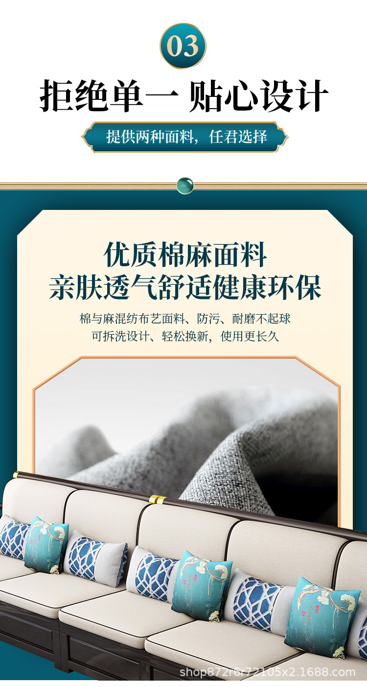 Phong cách Trung Quốc mới nhẹ nhàng sang trọng tất cả sự kết hợp ghế sofa gỗ nguyên khối kết hợp bàn ghế phòng khách phong cách Trung Quốc hiện đại Bộ ghế sofa bằng gỗ cộng với vải Xu hướng quốc gia mới