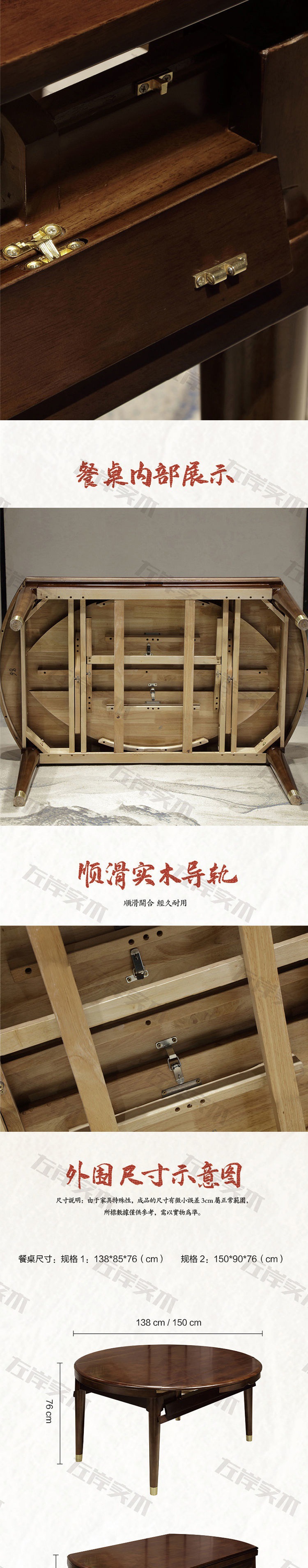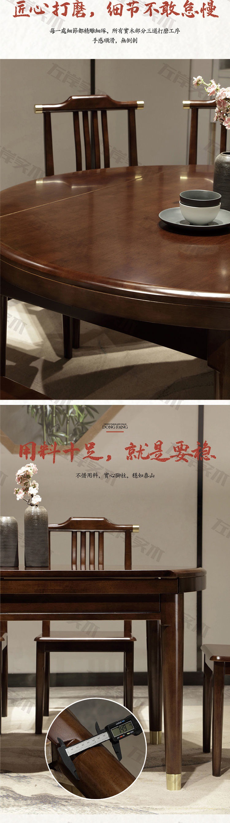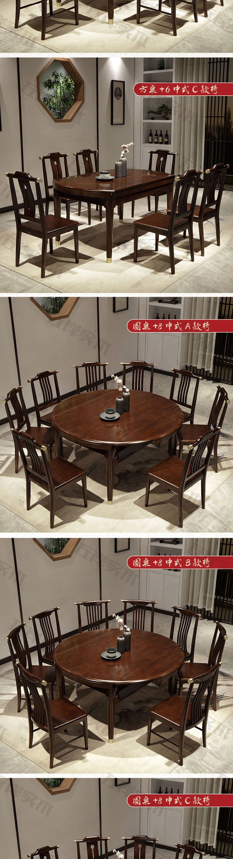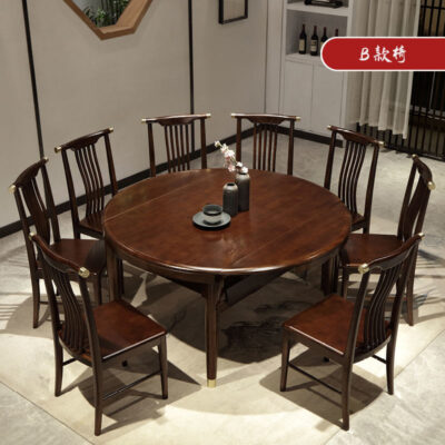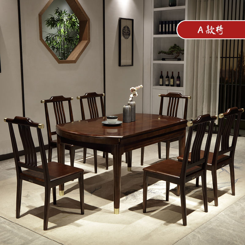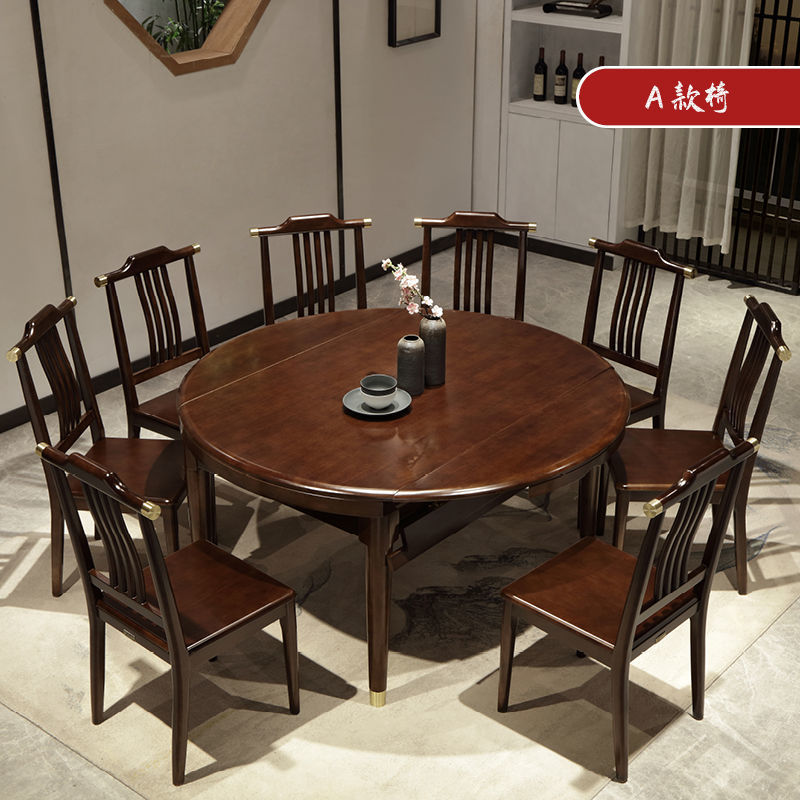 Phong cách Trung Quốc mới, tất cả bàn ghế ăn bằng gỗ nguyên khối, bàn ăn kết hợp, bàn ăn gấp bằng kính thiên văn, bàn ăn gia đình hình vuông tròn, bàn tròn biến thiên đa năng
