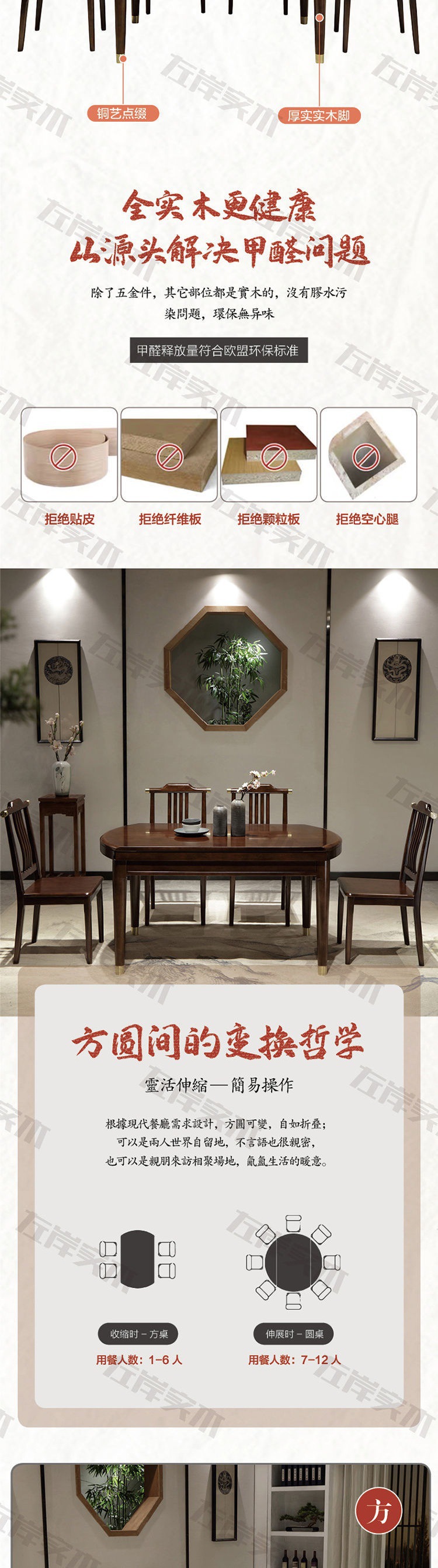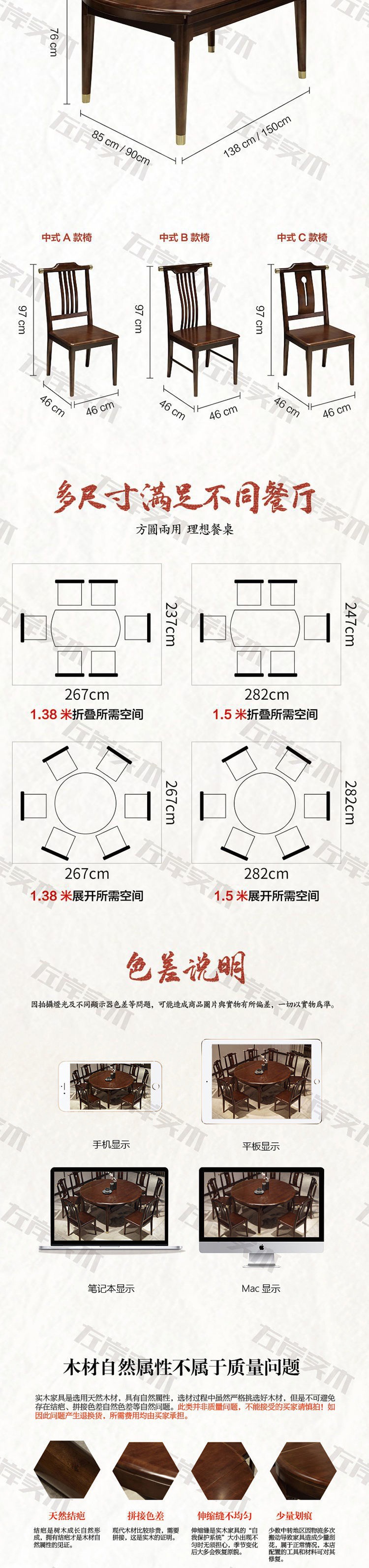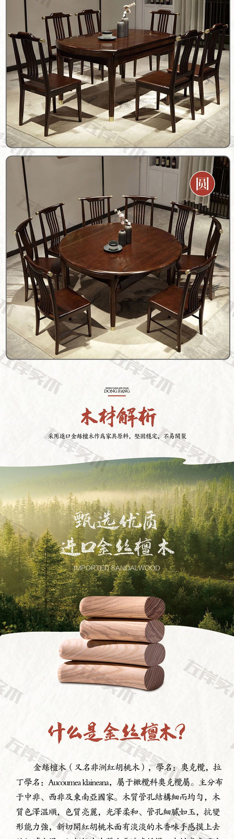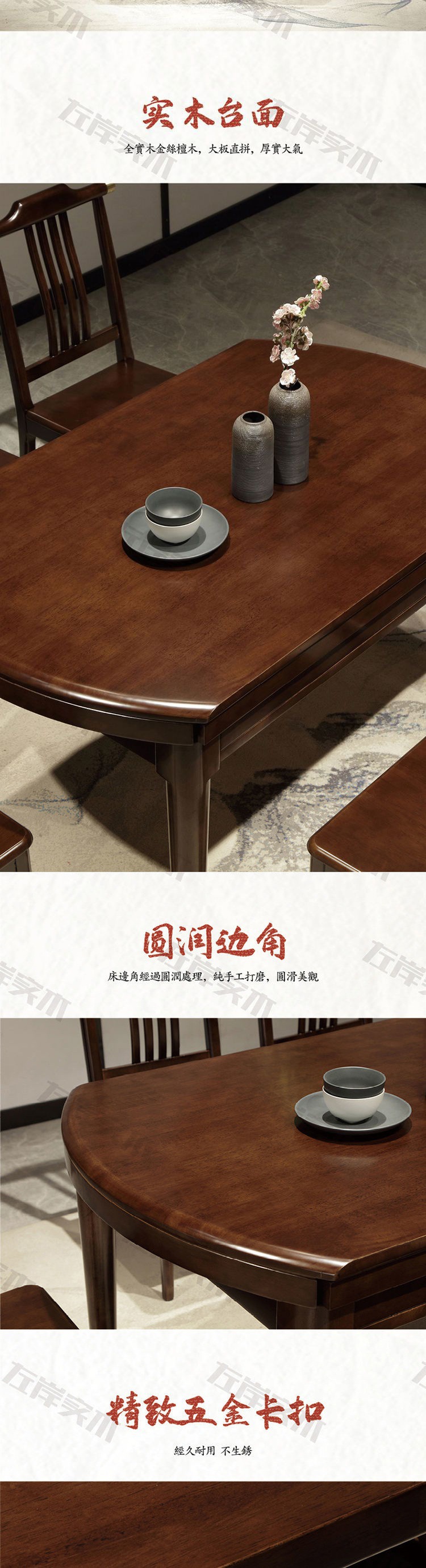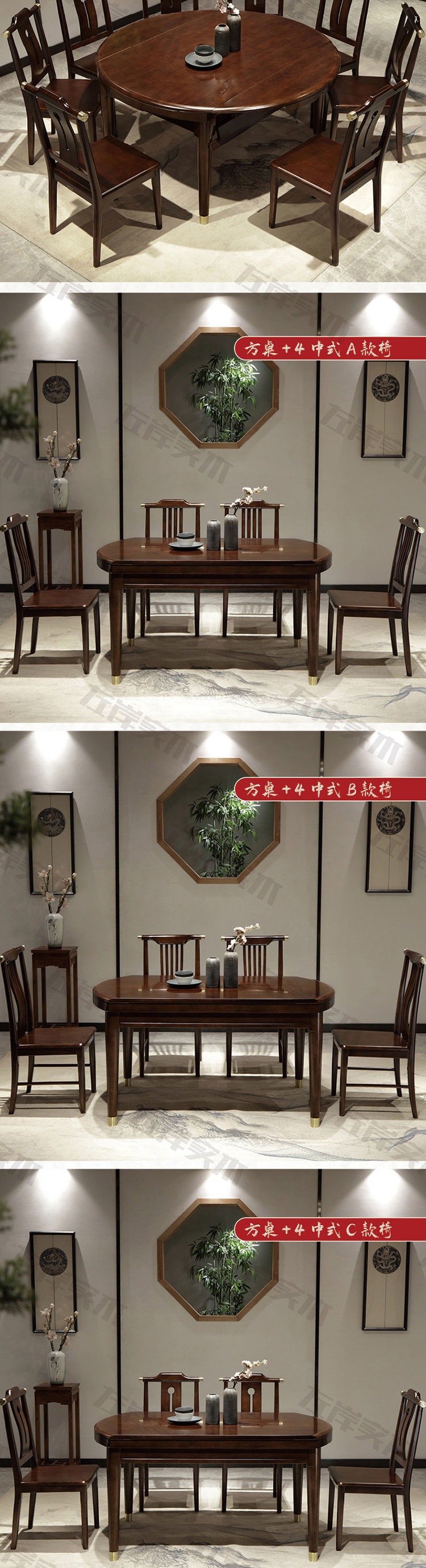 Phong cách Trung Quốc mới, tất cả bàn ghế ăn bằng gỗ nguyên khối, bàn ăn kết hợp, bàn ăn gấp bằng kính thiên văn, bàn ăn gia đình hình vuông tròn, bàn tròn biến thiên đa năng