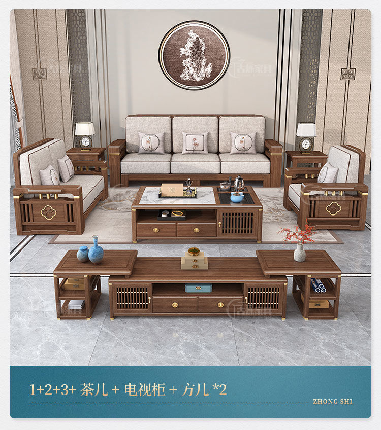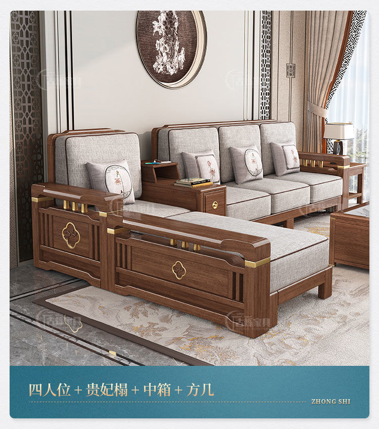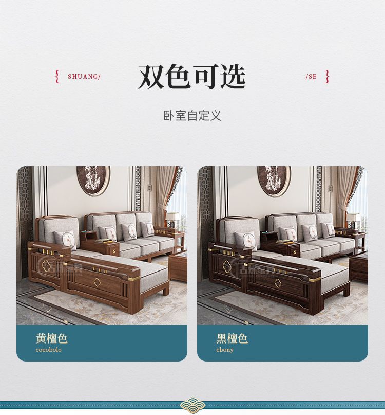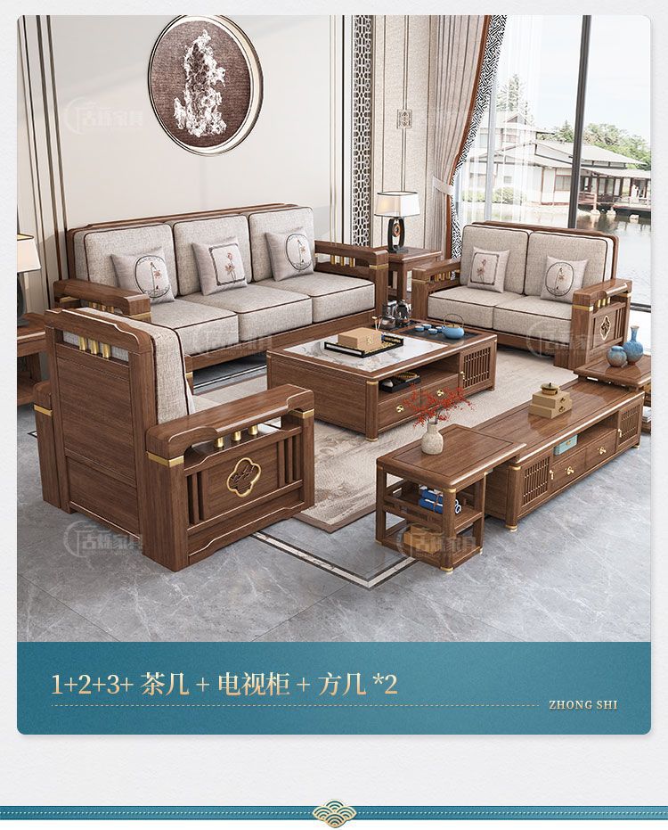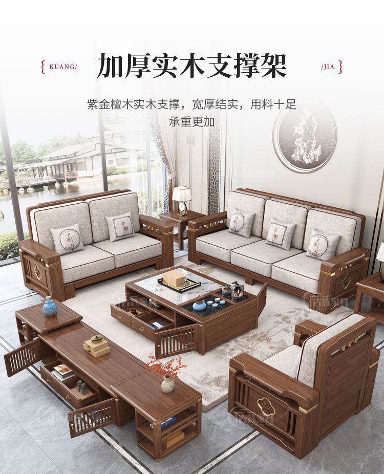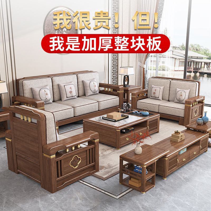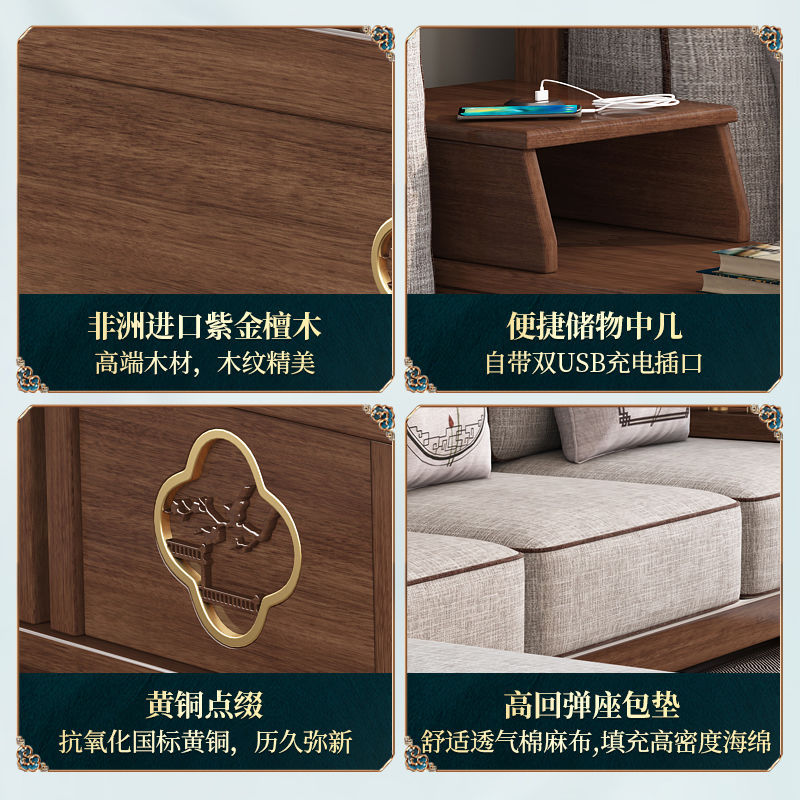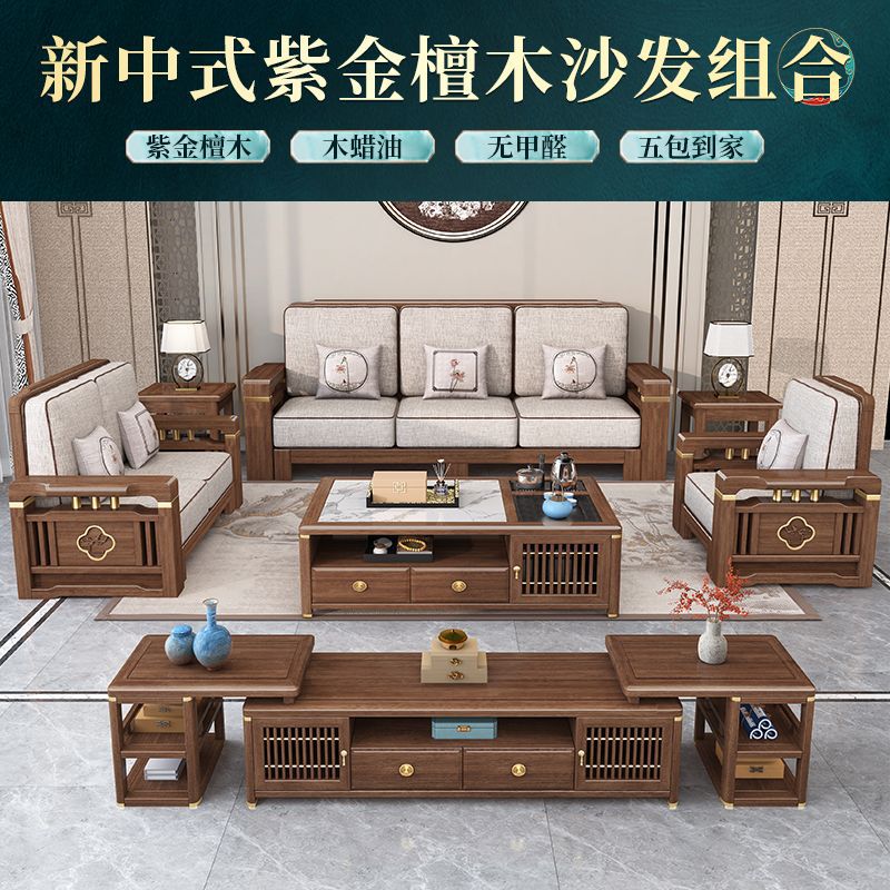 Phong cách Trung Quốc mới tất cả ghế sofa bằng gỗ nguyên khối phòng khách căn hộ nhỏ vải nghệ thuật tối giản hiện đại gỗ đàn hương vàng tím ba người kết hợp đồ nội thất bằng gỗ