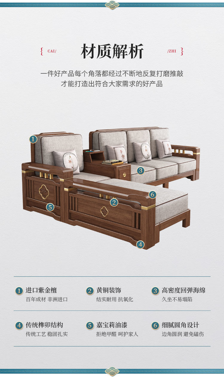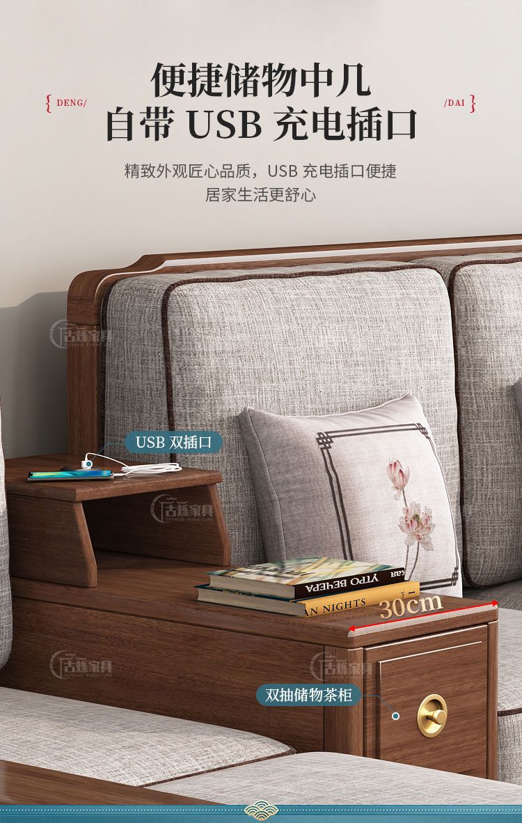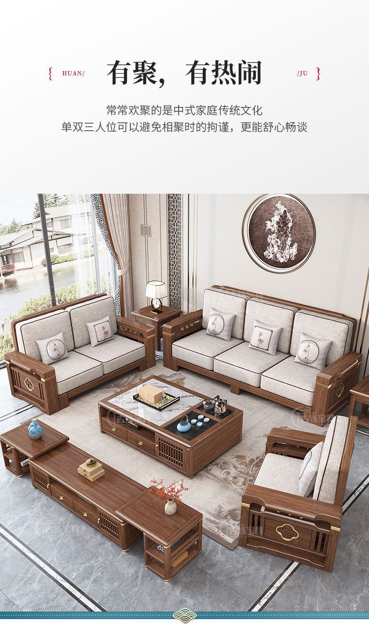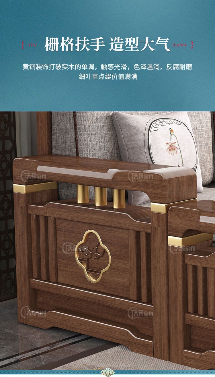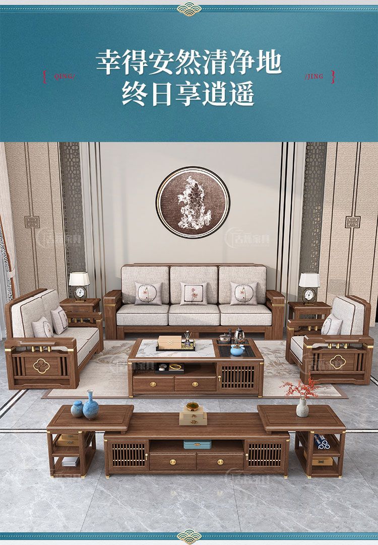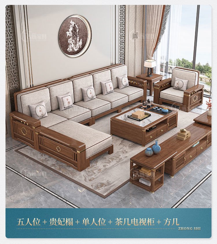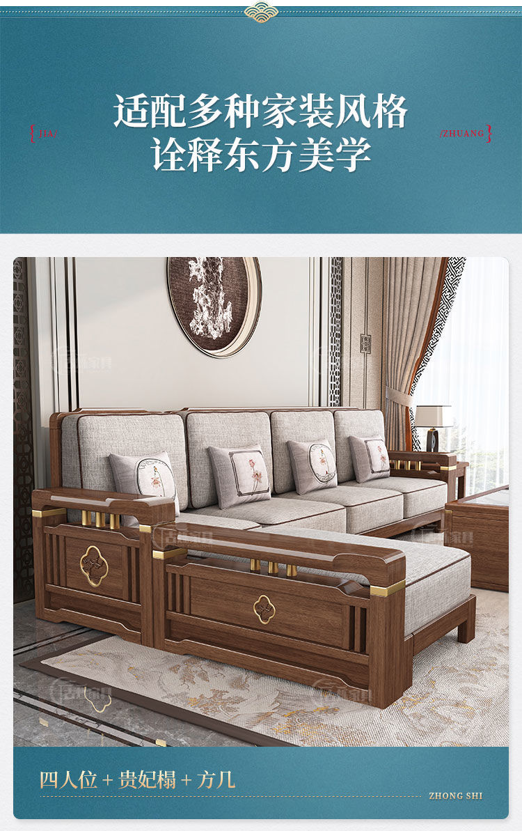 Phong cách Trung Quốc mới tất cả ghế sofa bằng gỗ nguyên khối phòng khách căn hộ nhỏ vải nghệ thuật tối giản hiện đại gỗ đàn hương vàng tím ba người kết hợp đồ nội thất bằng gỗ