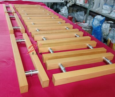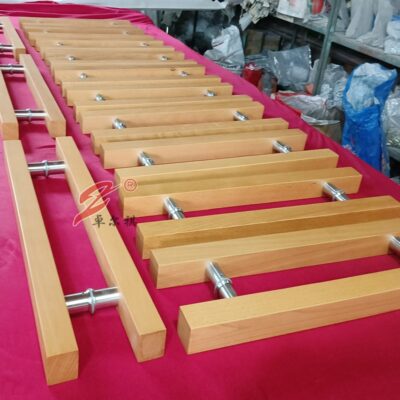 Phong cách Trung Quốc mới tay cầm sang trọng phòng tắm Tay nắm cửa kính tối giản hiện đại chữ gỗ LOGO tay cầm bằng gỗ nguyên khối