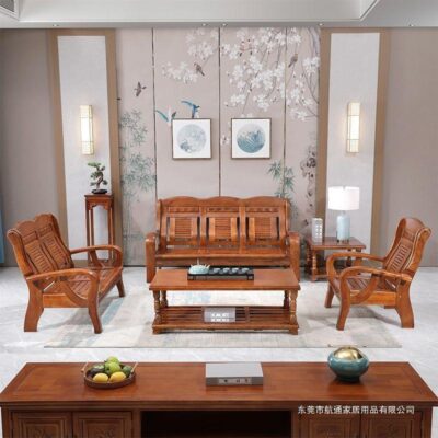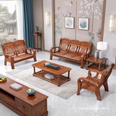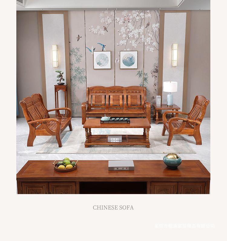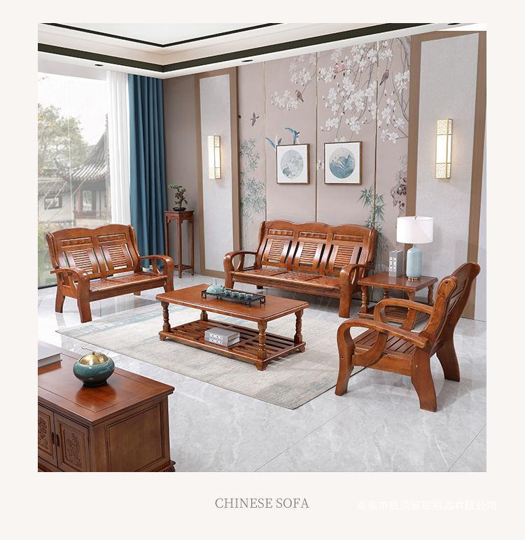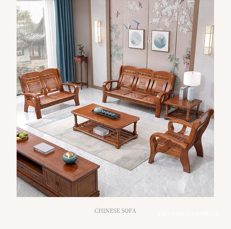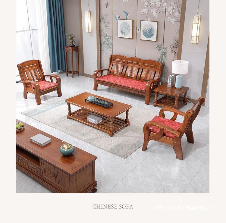 Phong cách Trung Quốc tất cả ghế sofa bằng gỗ nguyên khối kết hợp kiểu cũ gỗ thông thường chỗ ngồi ba người căn hộ nhỏ phòng khách đồ nội thất bằng gỗ nông thôn