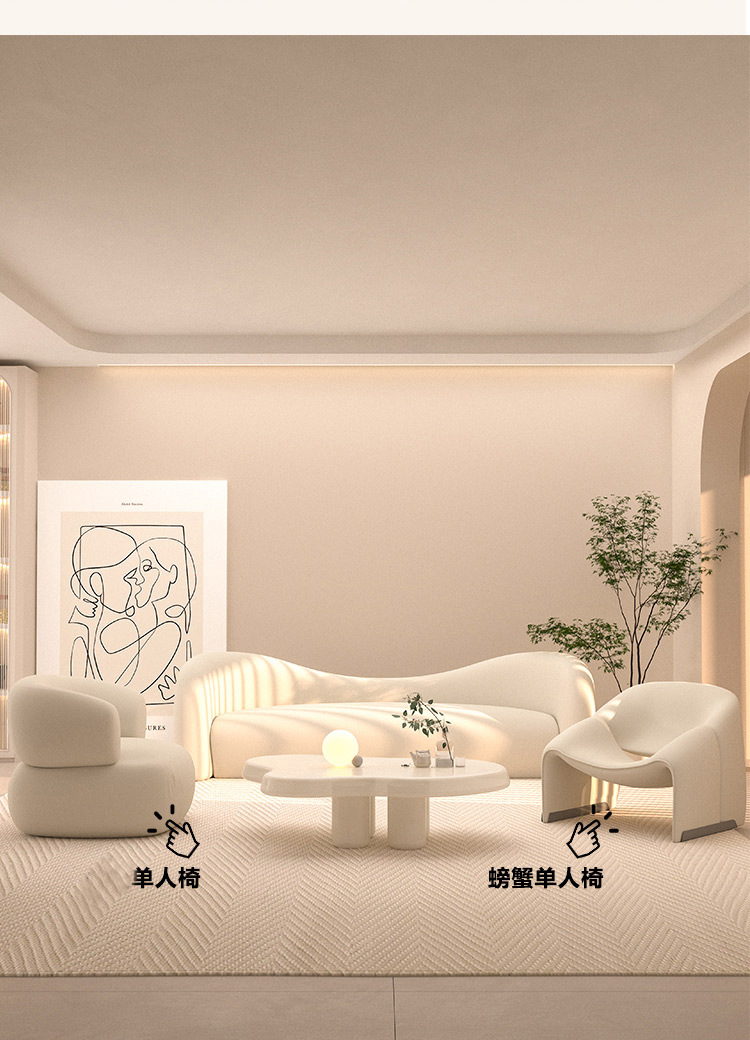 Phong cách wabi-sabi Internet phòng khách của người nổi tiếng sofa cong đẹp sáng tạo thẩm mỹ viện sang trọng hiện đại tối giản cửa hàng quần áo sofa phong cách màu kem
