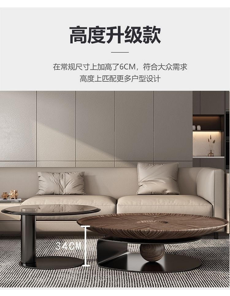 侘寂风胡桃木色简约大小茶几组合家用小户型客厅设计师圆茶几