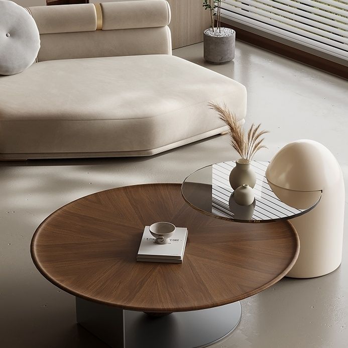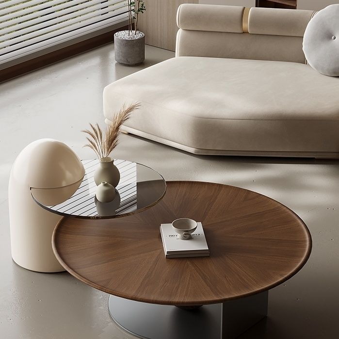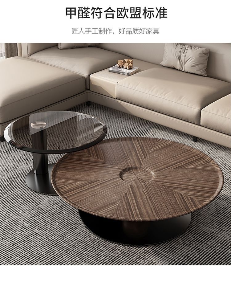 Phong cách Wabi-sabi màu óc chó kích thước đơn giản bàn cà phê kết hợp nhà căn hộ nhỏ phòng khách thiết kế bàn cà phê tròn