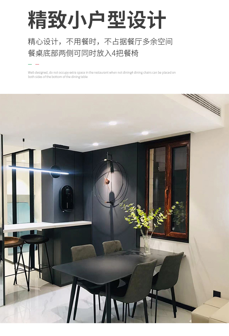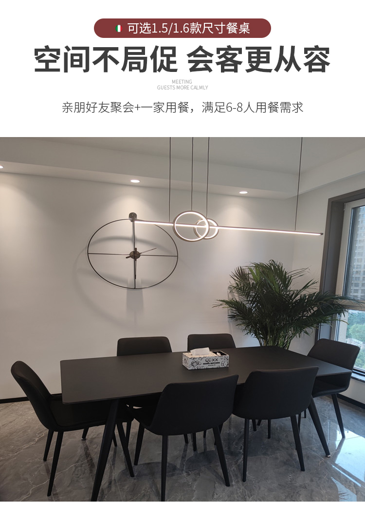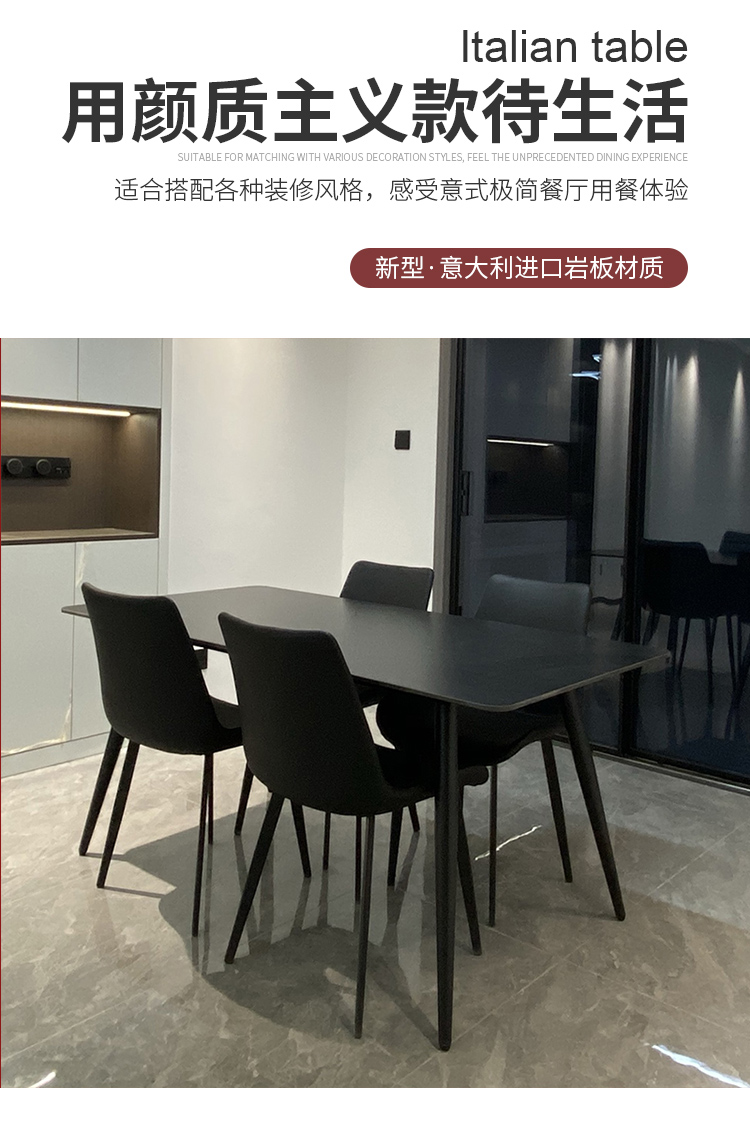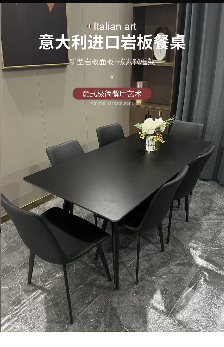 Phong cách Ý bàn ăn đá phiến đen tinh khiết căn hộ nhỏ nhà tối giản hình chữ nhật tối giản hiện đại tối giản bàn ăn lớn ghế màu đen 6/8 người