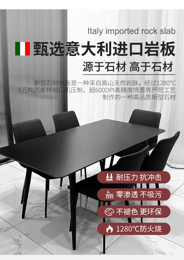 Phong cách Ý bàn ăn đá phiến đen tinh khiết căn hộ nhỏ nhà tối giản hình chữ nhật tối giản hiện đại tối giản bàn ăn lớn ghế màu đen 6/8 người là sản phẩm nổi bật trong dòng bàn ăn nhập khẩu, thiết kế hiện đại và sang trọng, phù hợp với nhiều không gian nội thất cao cấp.