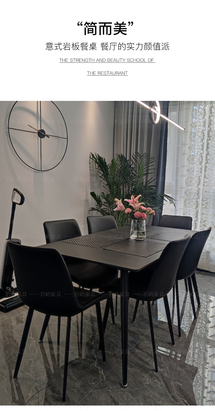 Phong cách Ý bàn ăn đá phiến đen tinh khiết hình chữ nhật hiện đại kích thước tối giản căn hộ nhà ăn bàn ăn màu đen ghế 6/8 người tối giản – Bàn ăn nhập khẩu cao cấp
