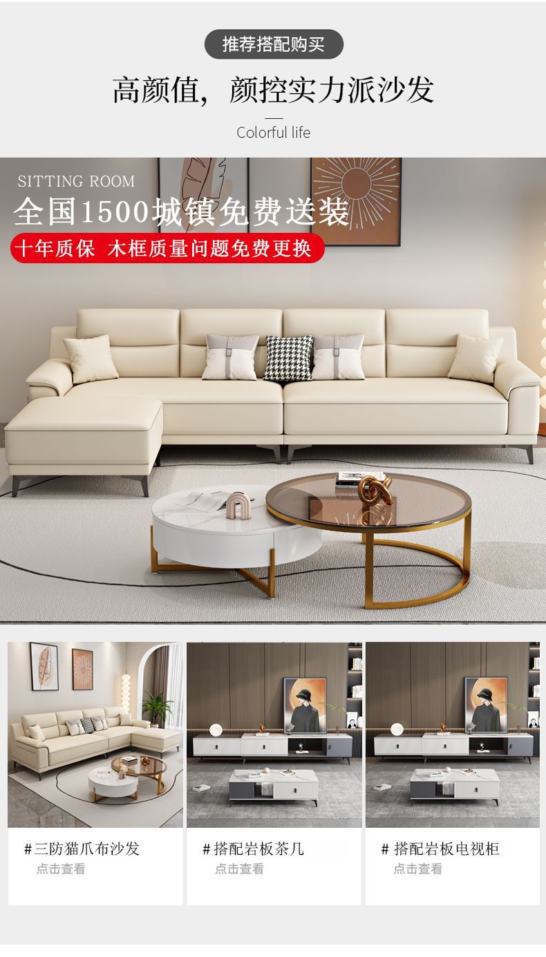 Phong cách Ý đẹp sang trọng phòng khách căn hộ lớn và nhỏ sofa vải cao su chaise sofa kết hợp mới móng vuốt mèo sofa vải