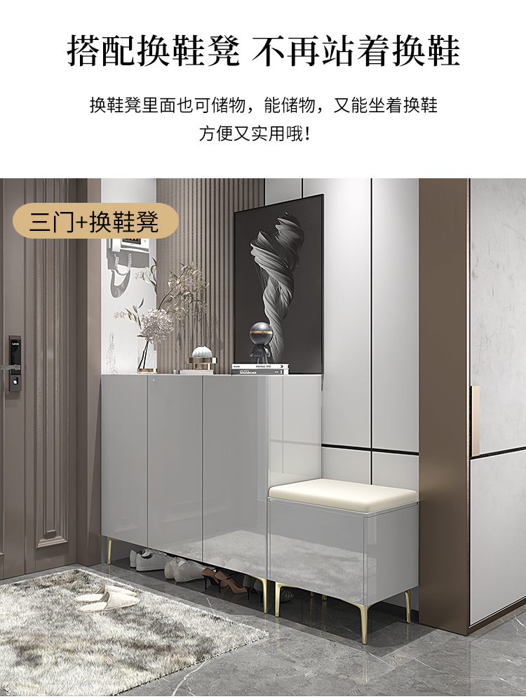 Phong cách Ý Đơn giản sang trọng bảng tủ giày cửa nhà áp tường 2023 hàng nhập hiên mới tích hợp tủ đựng đồ và ghế đẩu