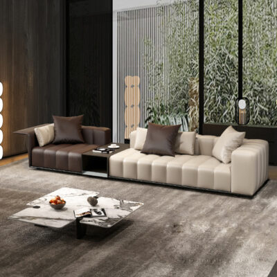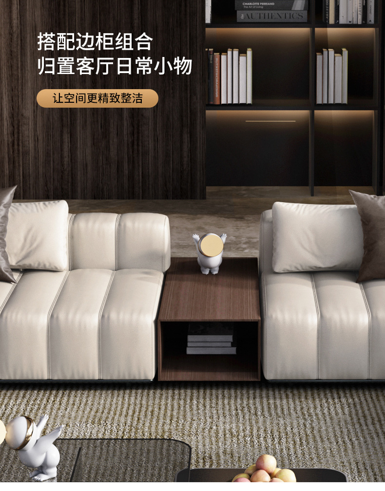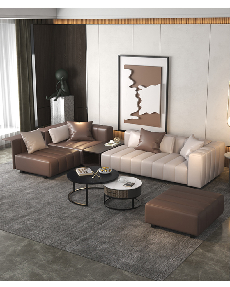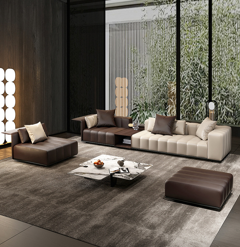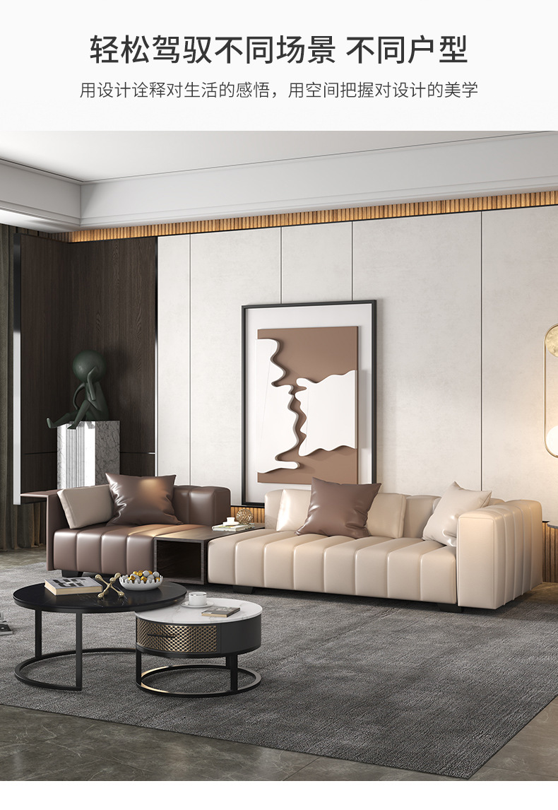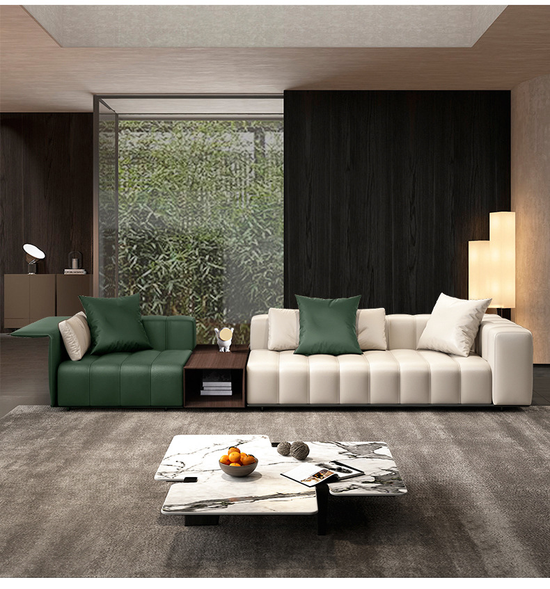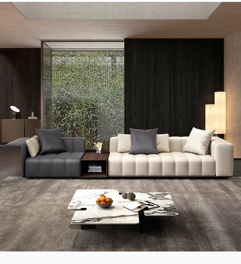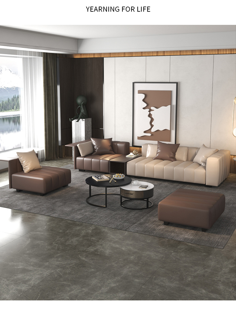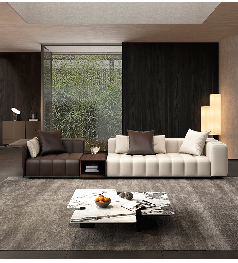 Phong cách Ý nhẹ nhàng sang trọng tối giản phím đàn piano sofa biệt thự phòng khách căn hộ lớn lớp đầu tiên da bò sofa da đàn piano