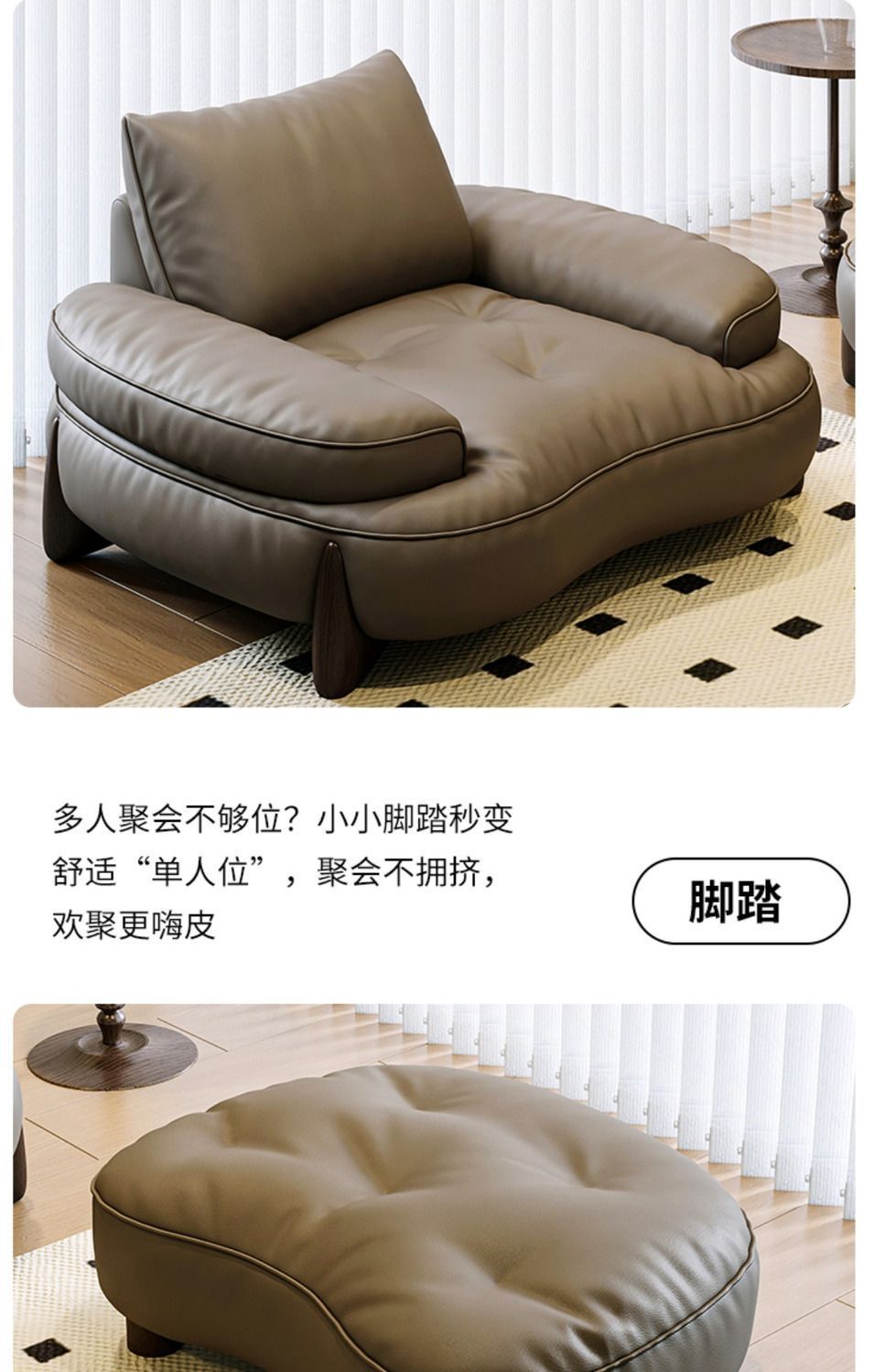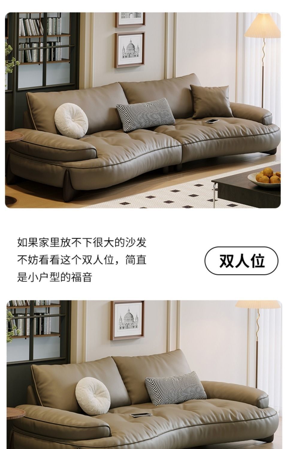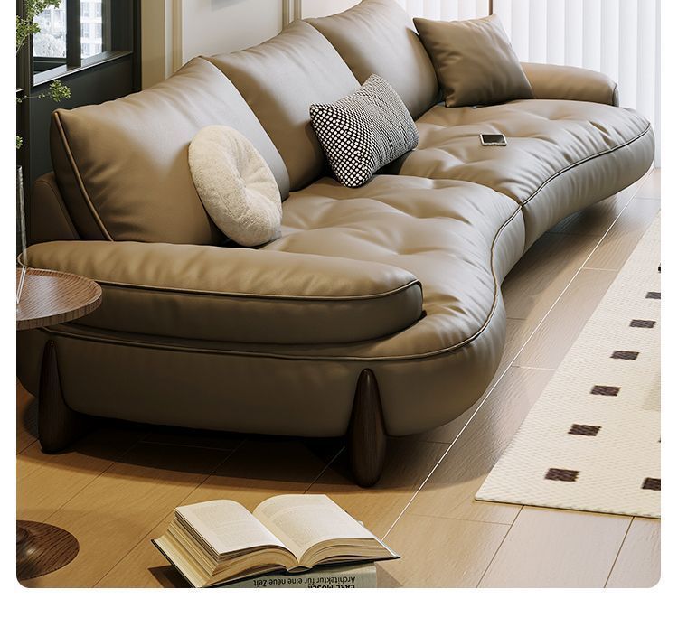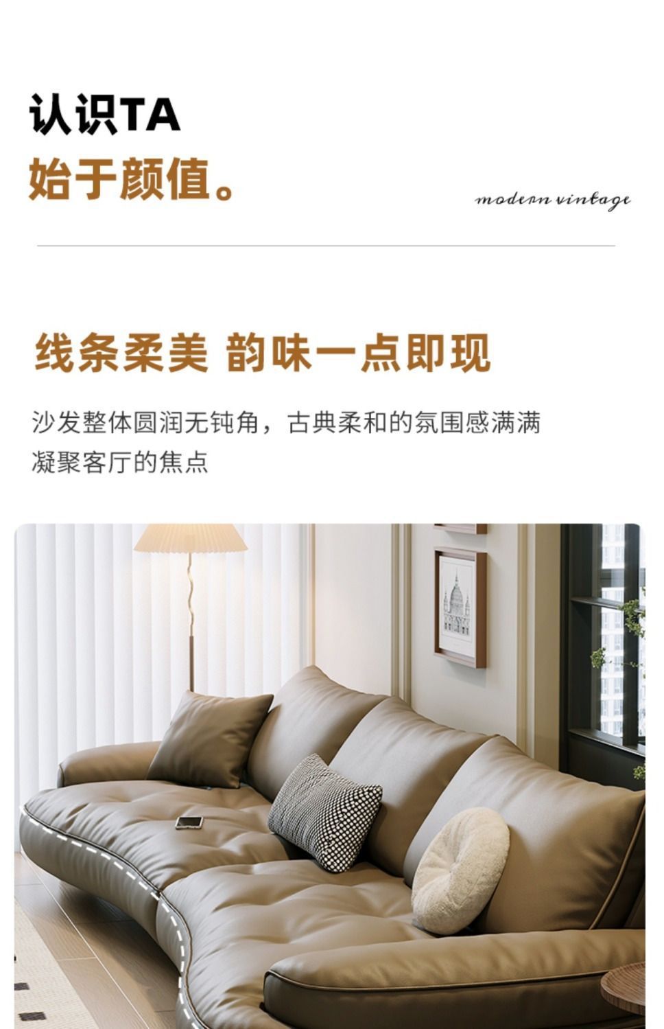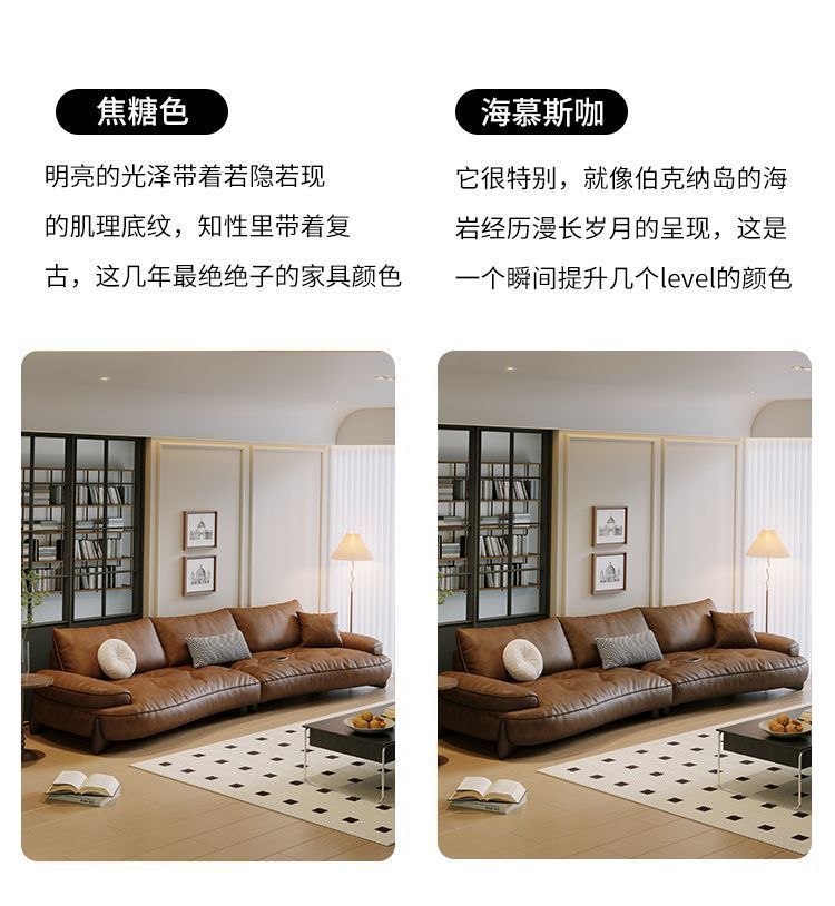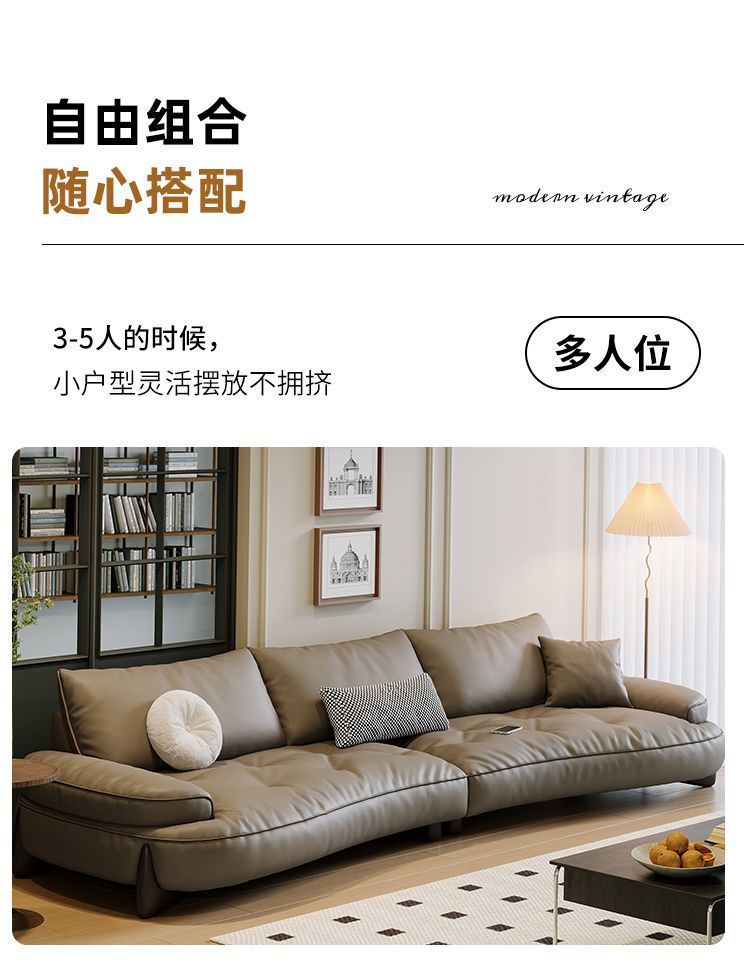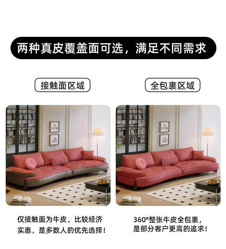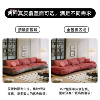 Phong cách Ý tối giản sofa phòng khách đầu lớp da bò cong đơn giản hiện đại ánh sáng sang trọng nội thất lưới da đỏ nghệ thuật sofa
